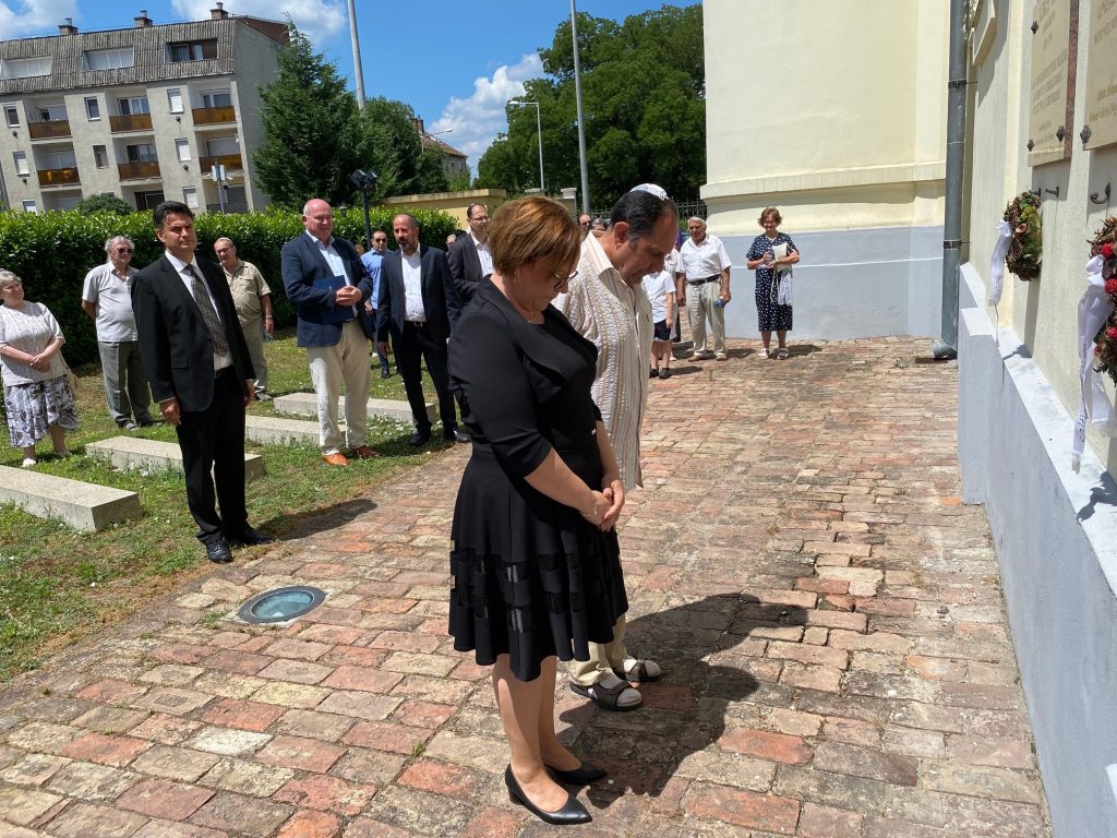 Kis Andrea alpolgármester megemlékező beszédében elmondta, hogy a holokausztban elhunytak emlékét őrzi a zsinagóga órája is, ami 1944 június 16-a óta 10:10-et mutat, arra figyelmeztetve, hogy emlékezzünk és emlékeztessünk.