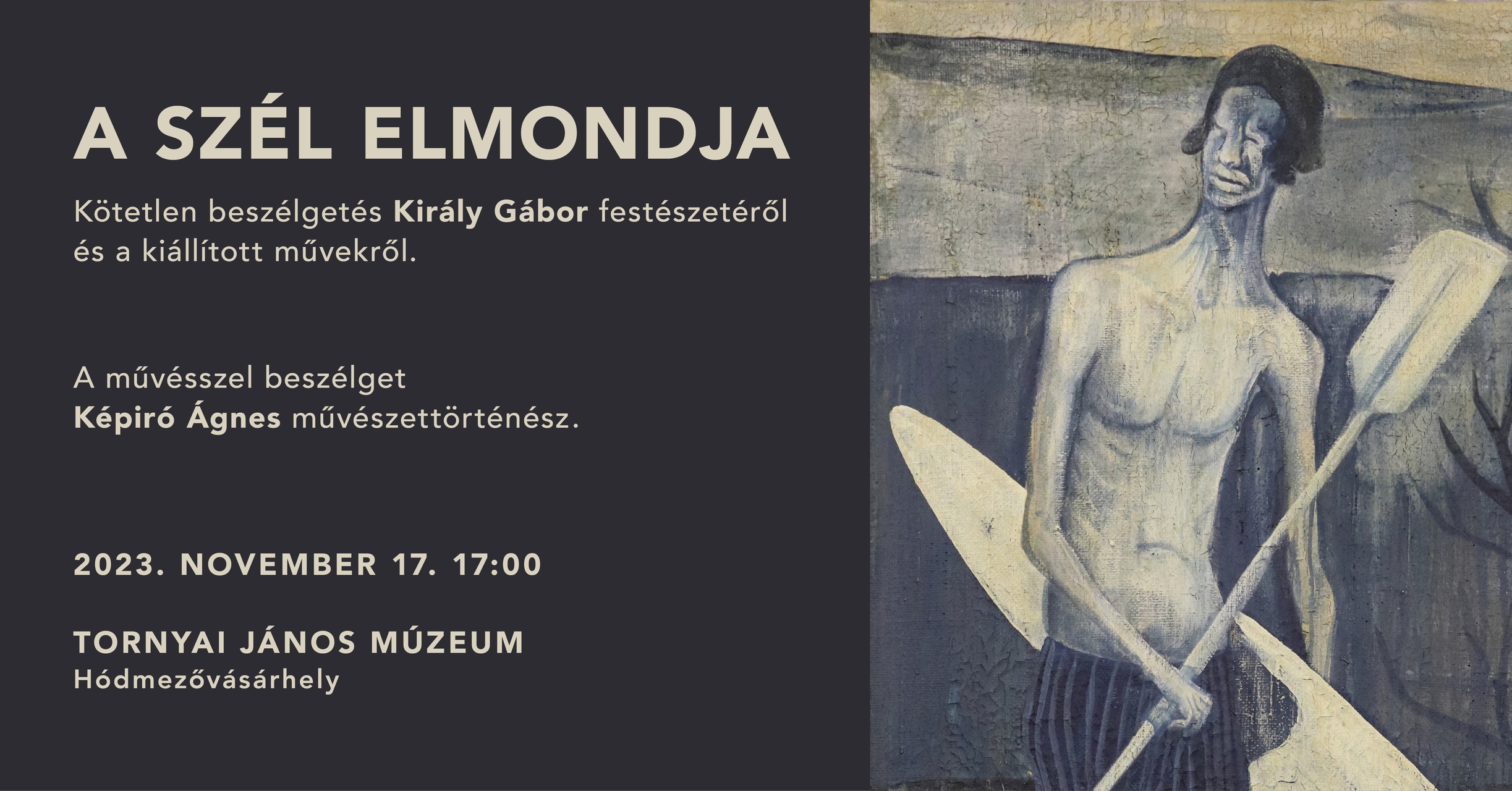 Király Gábor A szél elmondja című kiállításához kapcsolódó kötetlen beszélgetésre várja a Tornyai János Múzeum a kortárs festészet iránt érdeklődőket november 17-én, pénteken 17 órai kezdettel.