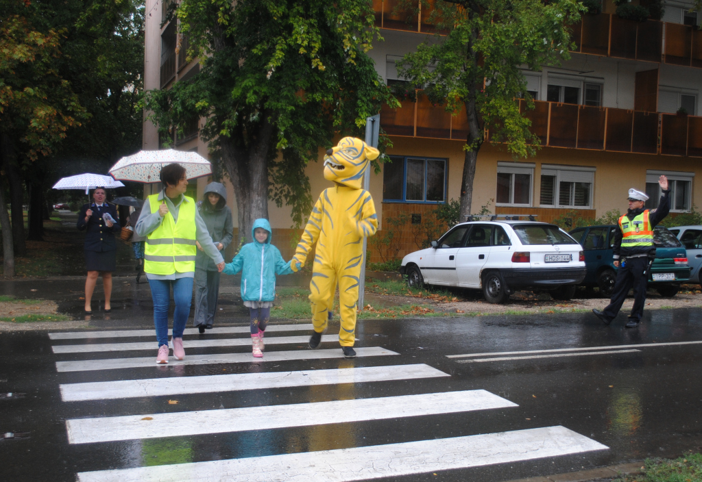 Az iskolakezdés első napján ismét segítették a gyerekek (és az őket kísértő szülők) biztonságos átkelését a zebrán a Szent József Kertvárosi Katolikus Általános Iskolánál a Szeretem Vásárhely egyesület aktivisták, köztük az évek óta ilyenkor feltűnő Tigris.