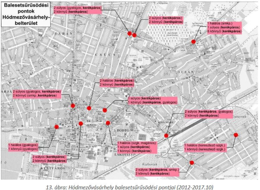 Az utóbbi 5 év alatt 108 olyan baleset történt Vásárhelyen, melyben kerékpáros is érintett volt. Ezekben 115-en sérültek meg, közülük 34-en súlyosan, 81-en könnyen. A legveszélyesebb helyszíneken ebből 73 történt.
