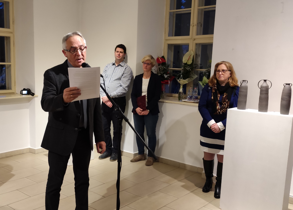 – Mi jut eszünkbe nekünk, vásárhelyi embereknek a kerámia szó hallatán? Mindenekelőtt a Kökénydombi Vénusz, az Őskőkori Vénusz szobrok egyike, a Vásárhely-Kopáncs területén talált sok ezer éves kerámiakultúra üzenete, mely napjainkban a Tornyai János Múzeum állandó régészeti kiállításán csodálható meg. De lépjük át gyorsan az elmúlt 7 évezredet… és ha körülnézünk a vásárhelyi háztartásokban, megállapíthatjuk, hogy még ma is fellelhetők a XX. század elejéig virágzó népi kerámia, a fazekasság bizonyos termékei: a miskakancsók, a lekváros szilkék, a cserép tésztaszűrők – ha csak emlékként, lakásdíszként is – mondta köszöntőjében Berényi Károly alpolgármester, aki hangsúlyozta, hogy a XIX. században volt, hogy 600 fazekasmester dolgozott a városban, az egész Kárpát-medencét ellátva háztartási kerámia termékekkel.