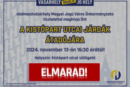 Szerdára tervezték a Kistópart utcai járdák átadóját – most azt írja a város gyorshír szolgálata, hogy a rendezvény a hűvös, ködös időjárás miatt elmarad, és egy későbbi időpontban tartja majd meg az önkormányzat.