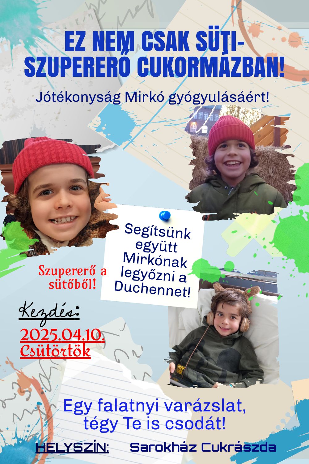 A cukrászda ma bejelentette, hogy saját sütit indítanak Mirkónak és a befolyt összeget átadják számára. Ezen kívül egy persely is ki lesz helyezve, amibe pénzadományokat helyezhetünk el.