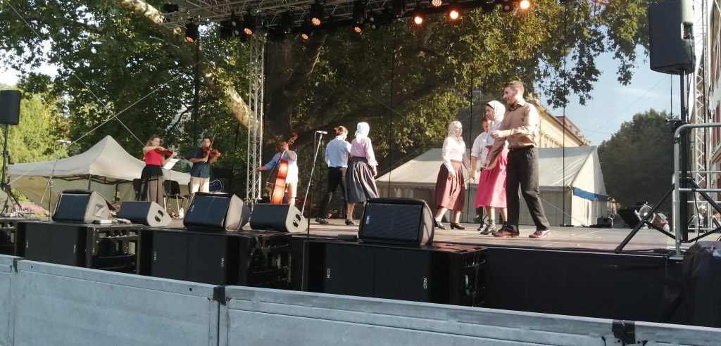 Fergeteges hangulatot teremtett a Kankalin és az Árendás néptáncegyüttes tegnap délutáni fellépése a Kossuth téren, néhány gyerek maga is táncra perdült a színpad előtt.
