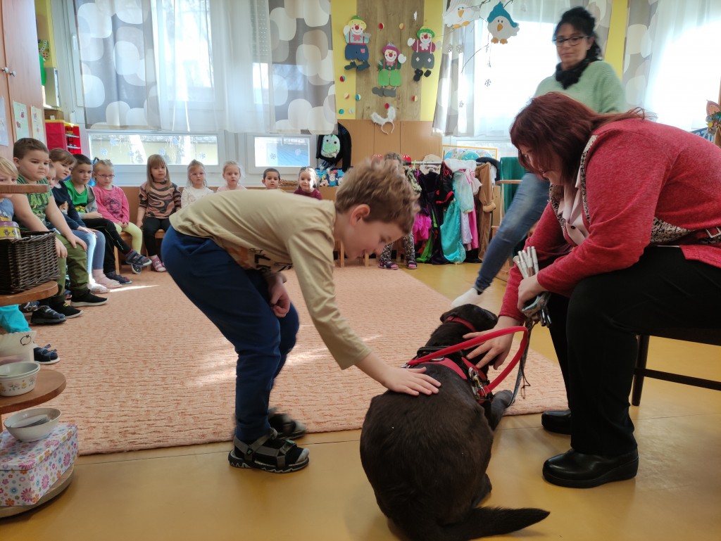 Az óvodások nagy érdeklődéssel figyelték, amit Zsuzsa mesélt Borókáról a kutyáról, s annak munkájáról éppen úgy, ahogy azokról a helyzetekről, melyekben a labrador szó szerint a gazdája szemeként viselkedik. És a gyerekek meg is osztották a saját vagy mások kutyusával kapcsolatos élményeiket. Megtudták azt is, hogy milyen a vakvezető kutyák szolgálati ruhája, hogy az ilyen ebek senkit sem bántanak. Ahogy azt is, mikor lehet őket megsimogatni. És azt, is, mi a küldetésük.