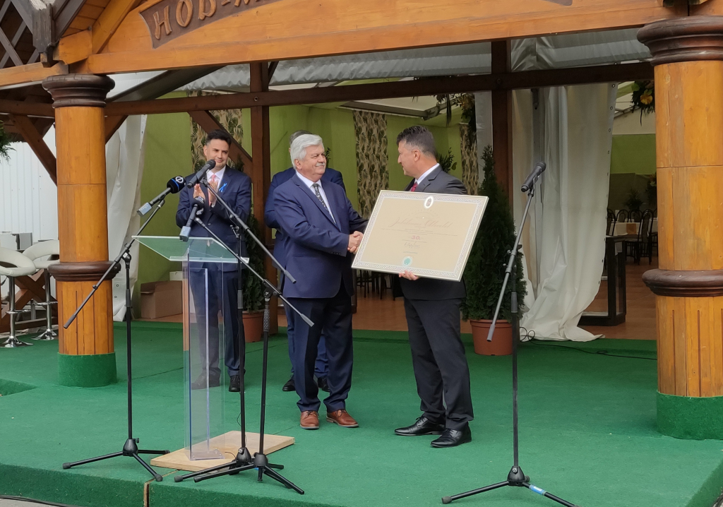 Farkas Sándor agrárminiszter-helyettes a jubileum alkalomból, Nagy István agrárminiszter megbízásából díszoklevelet adott át Antal Gábornak, a kiállítást szervező Hód-Mezőgazda Zrt. vezérigazgatójának.