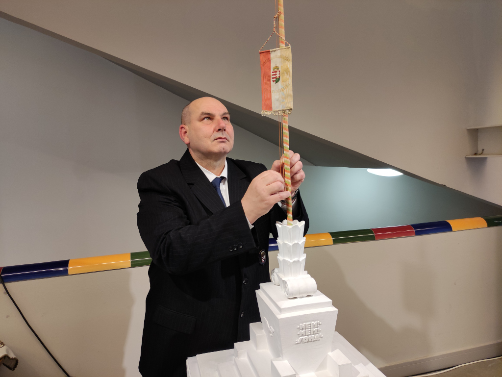 Az eredeti vásárhelyi országzászló makettje is látható a vásárhelyi kiállításon