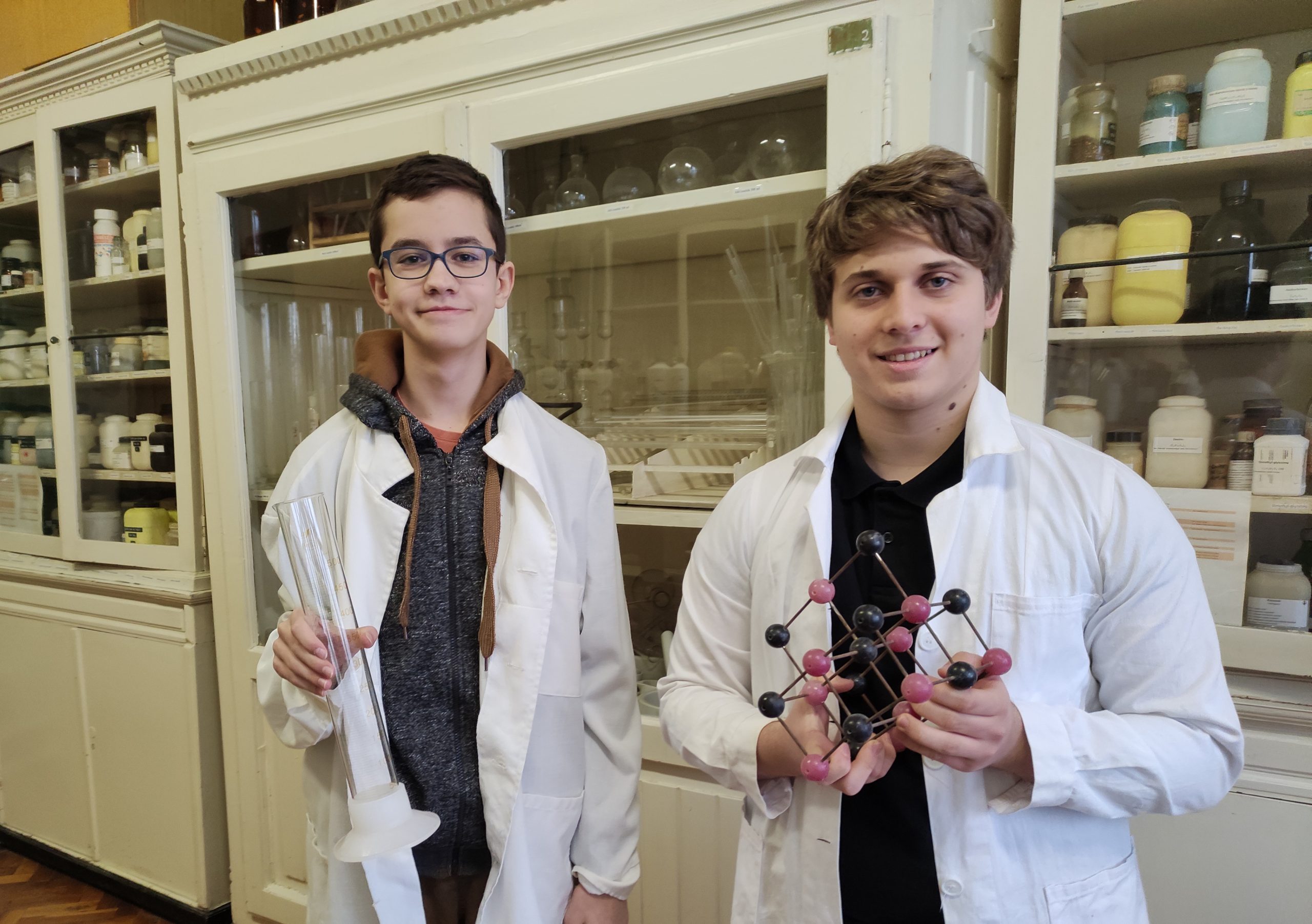 A két 8. osztályos gimnazista az előválogatóból öt kémiai kísérlet reprodukciójával és saját készítésű videójával jutott tovább a szakmai zsűri döntése alapján.