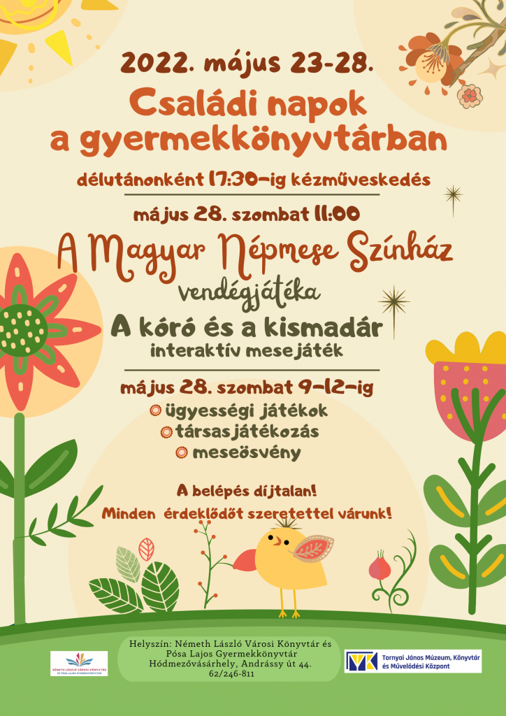 Családi napok a gyermekkönyvtárban KultúraProgram Írta: Bottyán Róbert Megjelent: 2022. május 19. csütörtök Kép: pixabay Megosztás 2022. május 23-28. között családi napok lesznek a gyermekkönyvtárban. A belépés ingyenes. gyermeknapHódmezővásárhelyPósa Lajos GyermekkönyvtárProgramajánló Megosztás