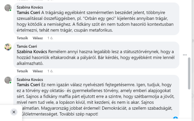 Elmondása szerint most újabb verbális abúzust érte a Facebookon és burkolt fenyegetés,