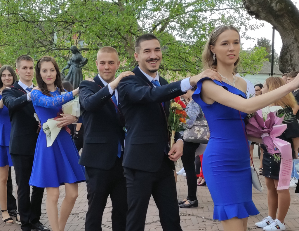 – Ne feledkezzetek meg arról, hogy a szakképző vizsga után érettségire és technikusi vizsgára is visszavárunk benneteket mondta. A Nagy utazás című Presser dal gitárduós változatával színesített ünnepségen az alsós diákok nevében is elbúcsúztatták a ballagókat, akik a suliban maradóktól is elköszöntek.