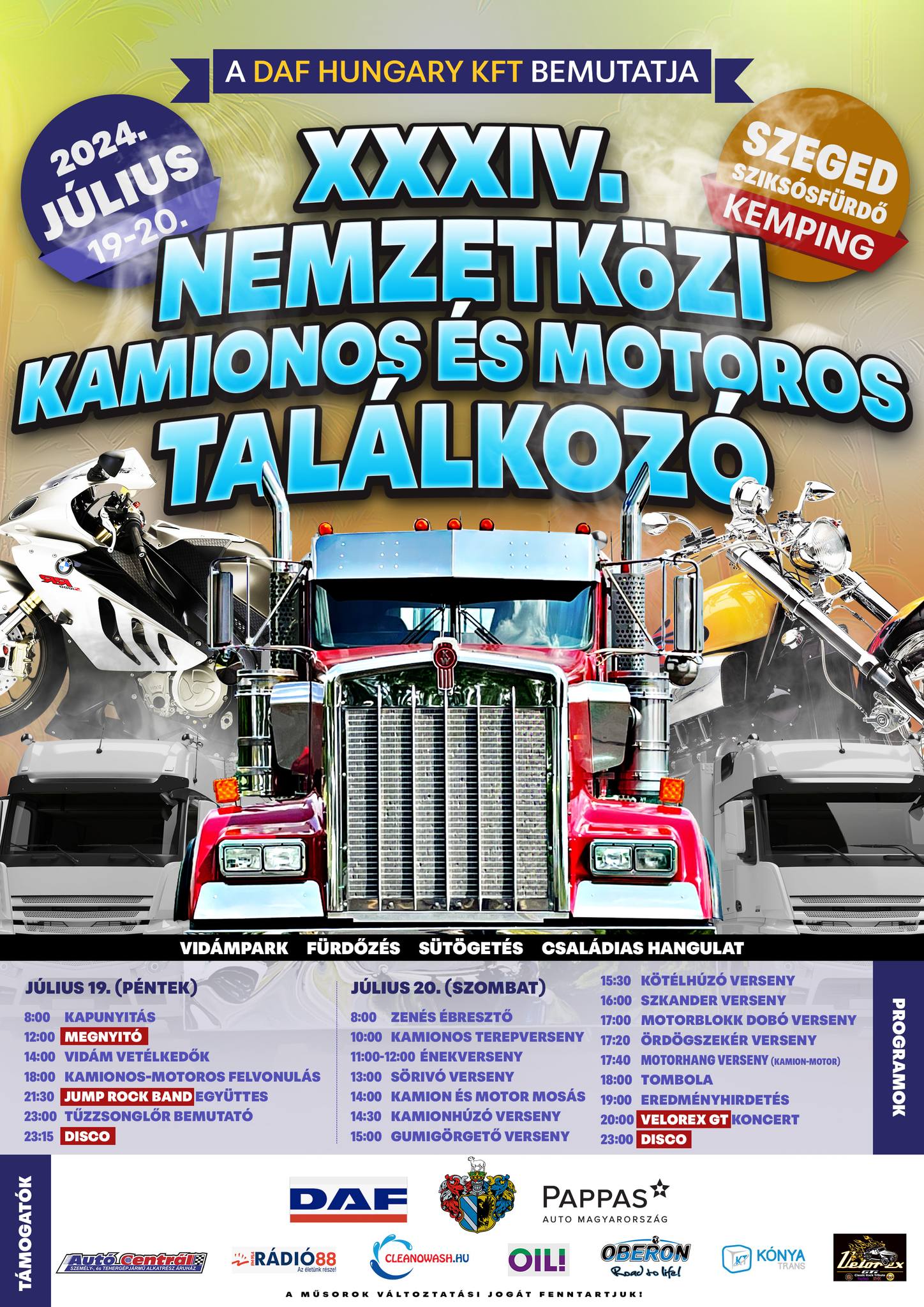 Nemzetközi Kamionos és Motoros Találkozót rendeznek Szeged-Sziksósfürdőn a hétvégén. A harmincnegyedik alkalommal megrendezett esemény Európa egyik legnagyobb és legrégebbi kamionos találkozójának számít.