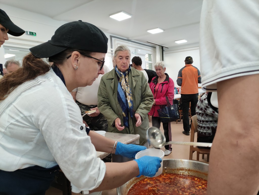 A már bevált gyakorlat szerint azok kapták meg elsőnek az ebédet, akik helyben fogyasztották el, majd azok, akik haza szerették volna vinni. És persze repeta is jutott.