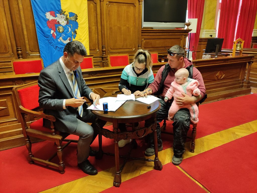 Hat párral (két párnak nem felelt meg ez az időpont) a város nevében ma délután a városháza dísztermében írta alá a szerződéseket Márki-Zay Péter polgármester. Kiderült, hogy a párok egy része eddig a szülőknél lakott, mások albérletben élnek. Mindannyiuk számára hatalmas előrelépés lesz a „saját” otthon.