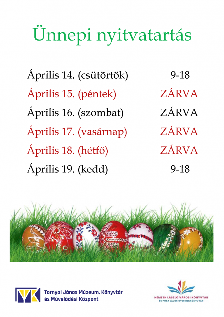Kedden nyit majd a könyvtár KultúraRöviden Írta: Bottyán Róbert Megjelent: 2022. április 13. szerda Kép: Vásárhelyi TV Megosztás A Németh László Városi Könyvtár 2022. április 15-18-ig zárva tart. Szolgáltatásaikat április 19-én (kedden) 9 órától vehetjük ismét igénybe. húsvétNémeth László Városi Könyvtárnyitvatartás Megosztás