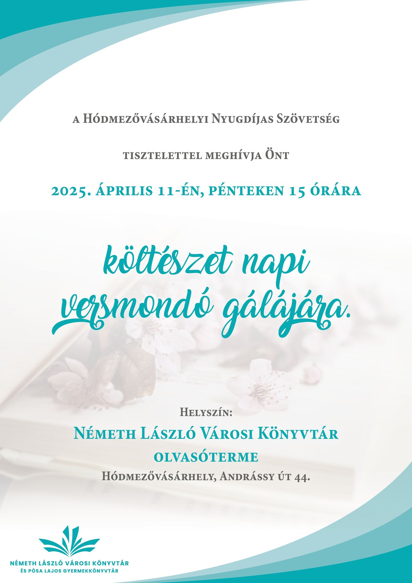 A költészet napján, április 11-én (pénteken) 15 órától tekinthetjük és hallgathatjuk meg a Hódmezővásárhelyi Nyugdíjas Szövetség versmondó gáláját. A borítókép illusztráció.