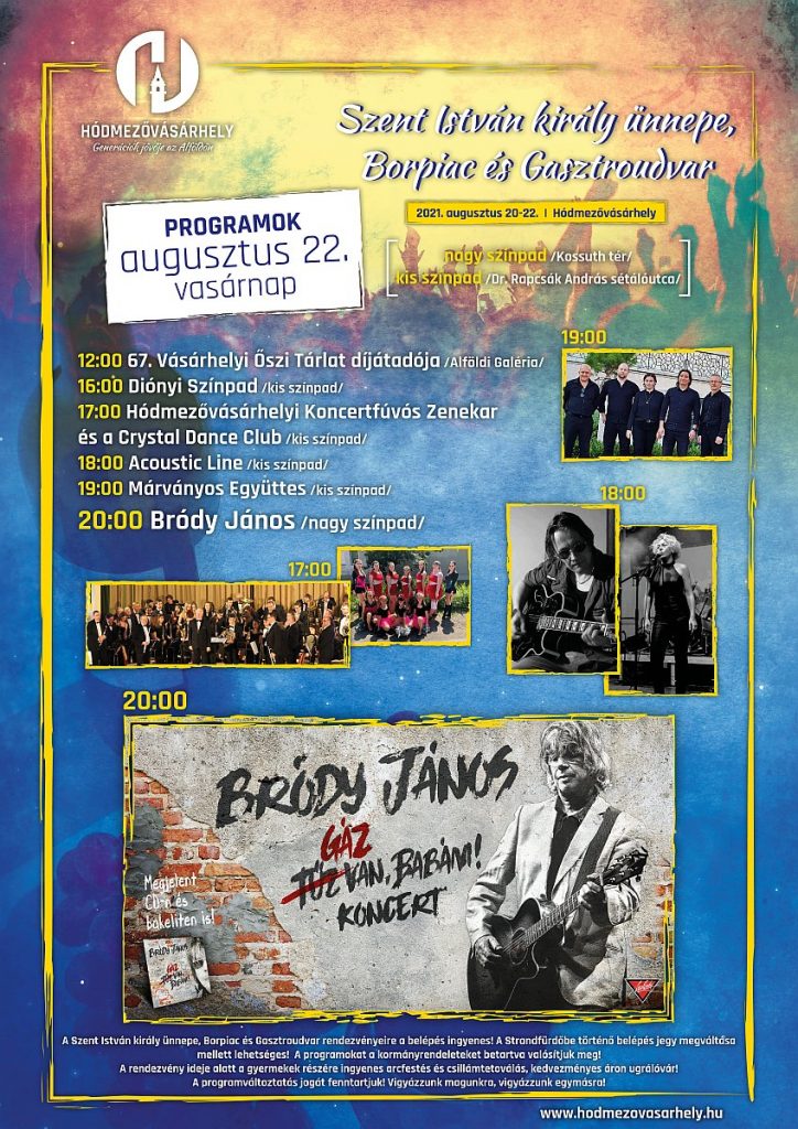 Koncertekkel, borpiaccal és gasztroudvarral jön az augusztus 20. Vásárhelyre KultúraProgramVárosunk Írta: Bottyán Róbert Megjelent: 2021. augusztus 6. péntek 2020. augusztus 20-a. Fotó: Márki-Zay Péter Facebook oldala Megosztás Íme a háromnapos ünnepségsorozat részletes programja: augusztus 20HódmezővásárhelyprogramProgramajánló Megosztás