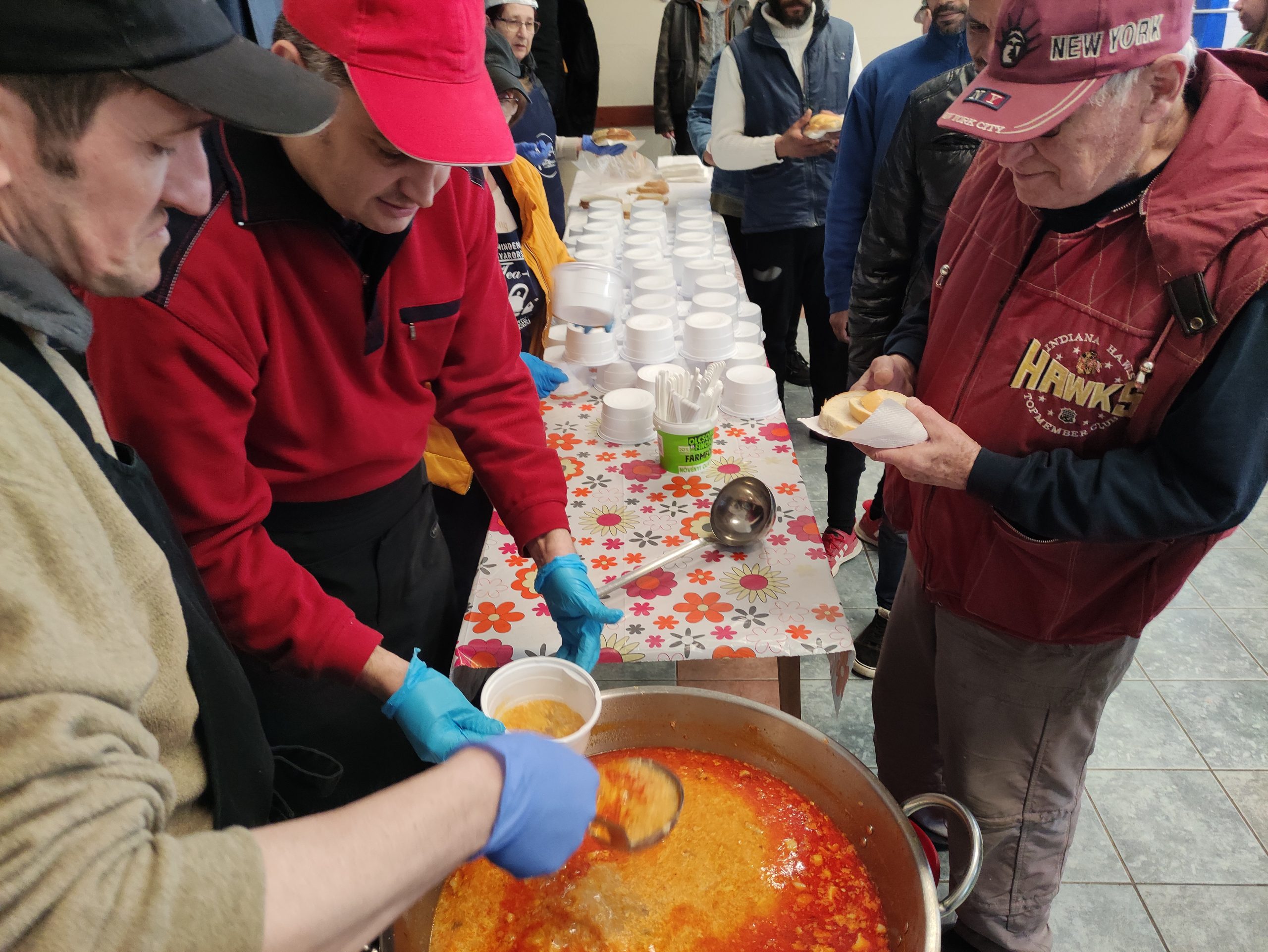 Nem kellett nagyon biztatni a Mindenki Magyarországa Mozgalom, a Minden Fiatal Magyarországa és a Tiszta Vásárhelyért Egyesület vasárnap déli, a Tabáni Olvasókör Szerencse utcai székházában rendezett ingyenes ételosztáson megjelenteket. A valamivel több, mint hatvan érdeklődő szépen sorban állt a Czeller Éva önkéntes által fűzött csurgatott tojásos, füstölt húsos krumplilevesért, majd amikor azt megkapták szépen leültek s elkanalazták a sűrű és forró egytál ételt.