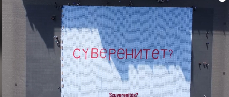 A civil szervezet a tegnapi napon közzétett egy látványos légifelvételt, amely bemutatja, hogy borították be az aHang aktivistái a Kossuth teret, valamint a magasból látható az egész felfestett “Суверенитет?” felirat is – tájékoztatta a Vásárhelyi Médiacentrumot az aHang.