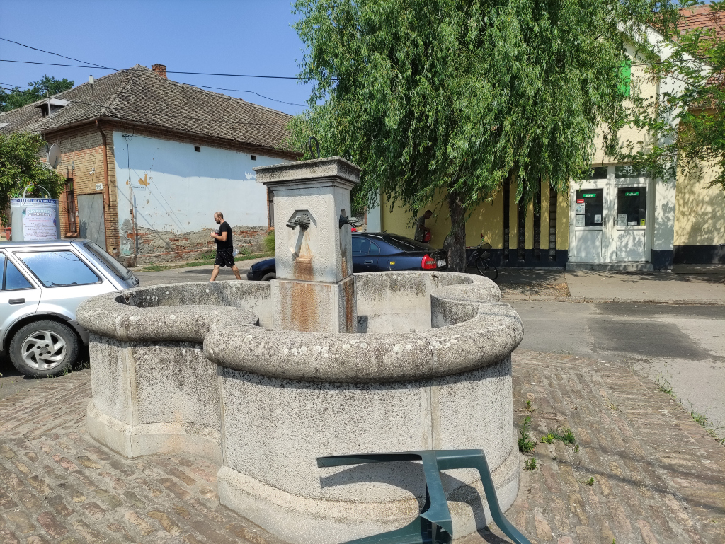 A közkifolyó medencéjének közepén egy háromoldalú kalászi mészkőből készült kőoszlop emelkedett, amelynek márványtábláján arany betűkkel hirdették, hogy a kút közadakozásból készült. A húszas években újra fúrták. Az 1950-es években elbontották, mert „akadályozta” a forgalmat. A Városvédő és Szépítő Egyesület, valamint a Csongrád Megyei Víz- és Csatornamű Vállalat 1988-ban állította helyre.