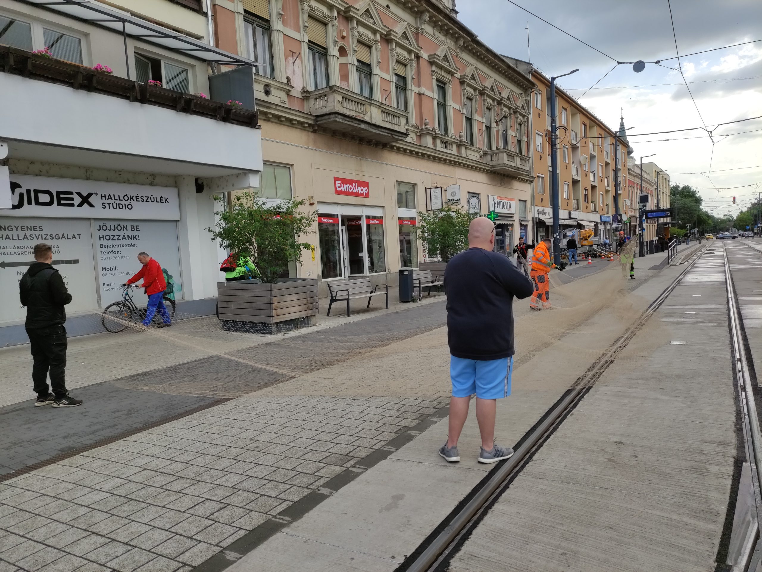 Nem halászok lepték el ma délelőtt a vásárhelyi Andrássy út elejét, nem is a tram-traint akarták megállítani a kiterített hálóval, hanem a madarak távoltartását készítették elő az Andrássy út 3. számú épületénél.