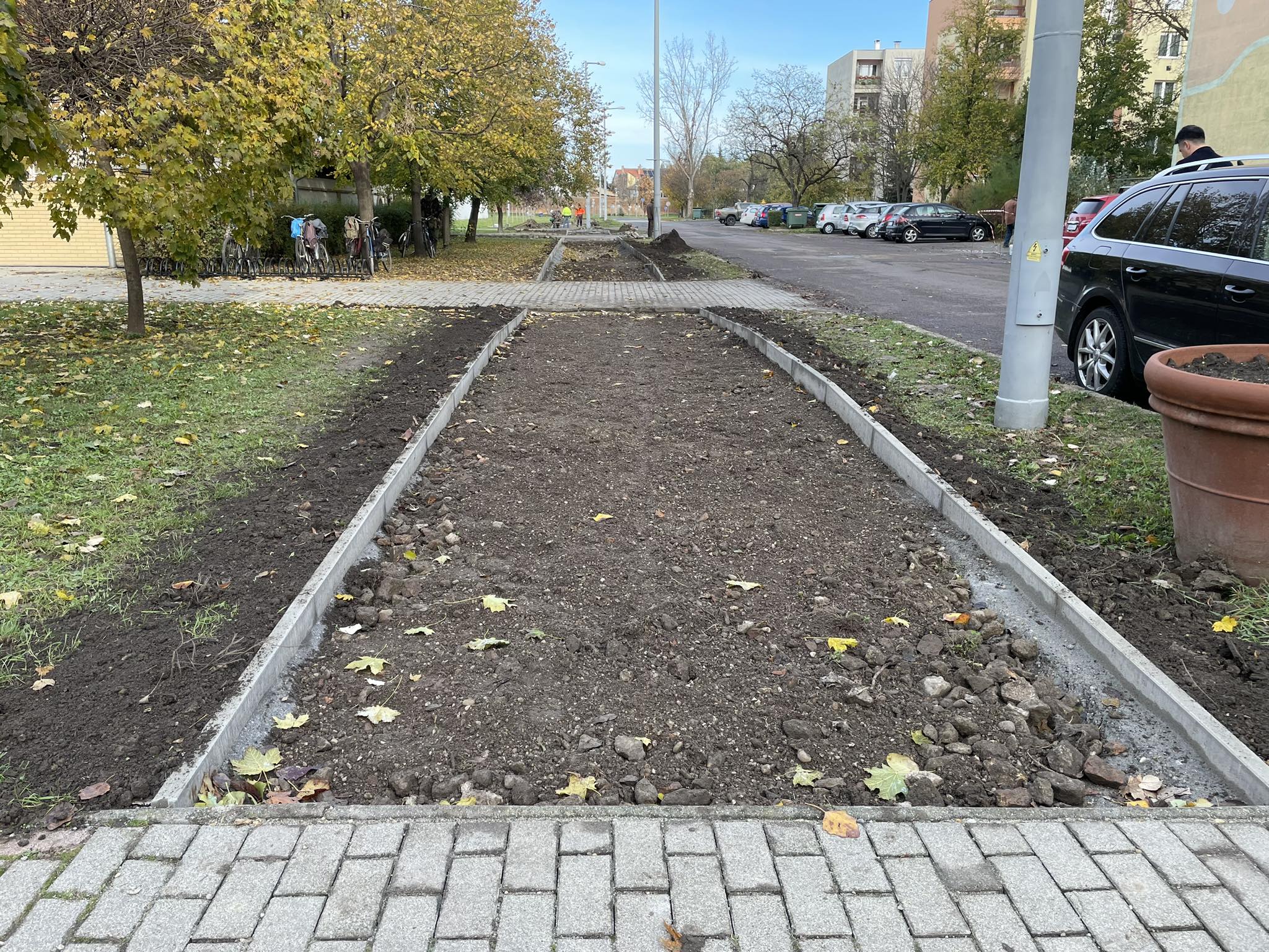 Már épül a járda a Nyugdíjas Lakópark előtt