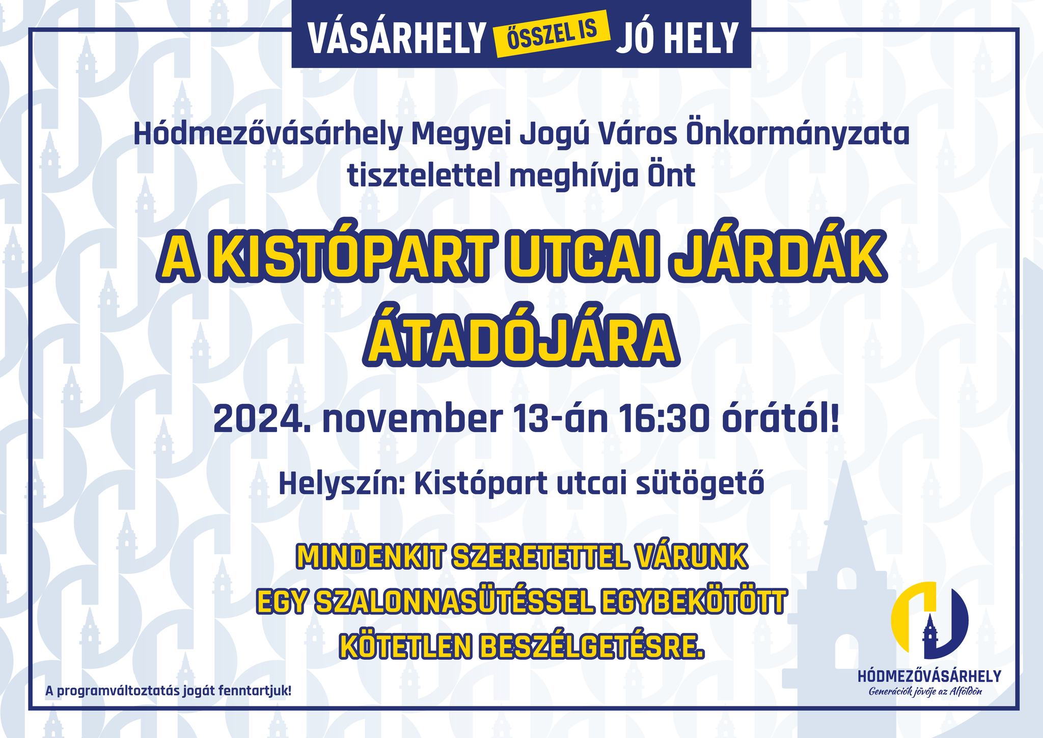 2024-ben több mint 24 millió forintból újult meg a Kistópart utca Hódmezővásárhelyen. A beruházást november 13-án, szerdán 16:30-tól a lakossággal közös szalonnasütéssel ünnepli a vásárhelyi önkormányzat.