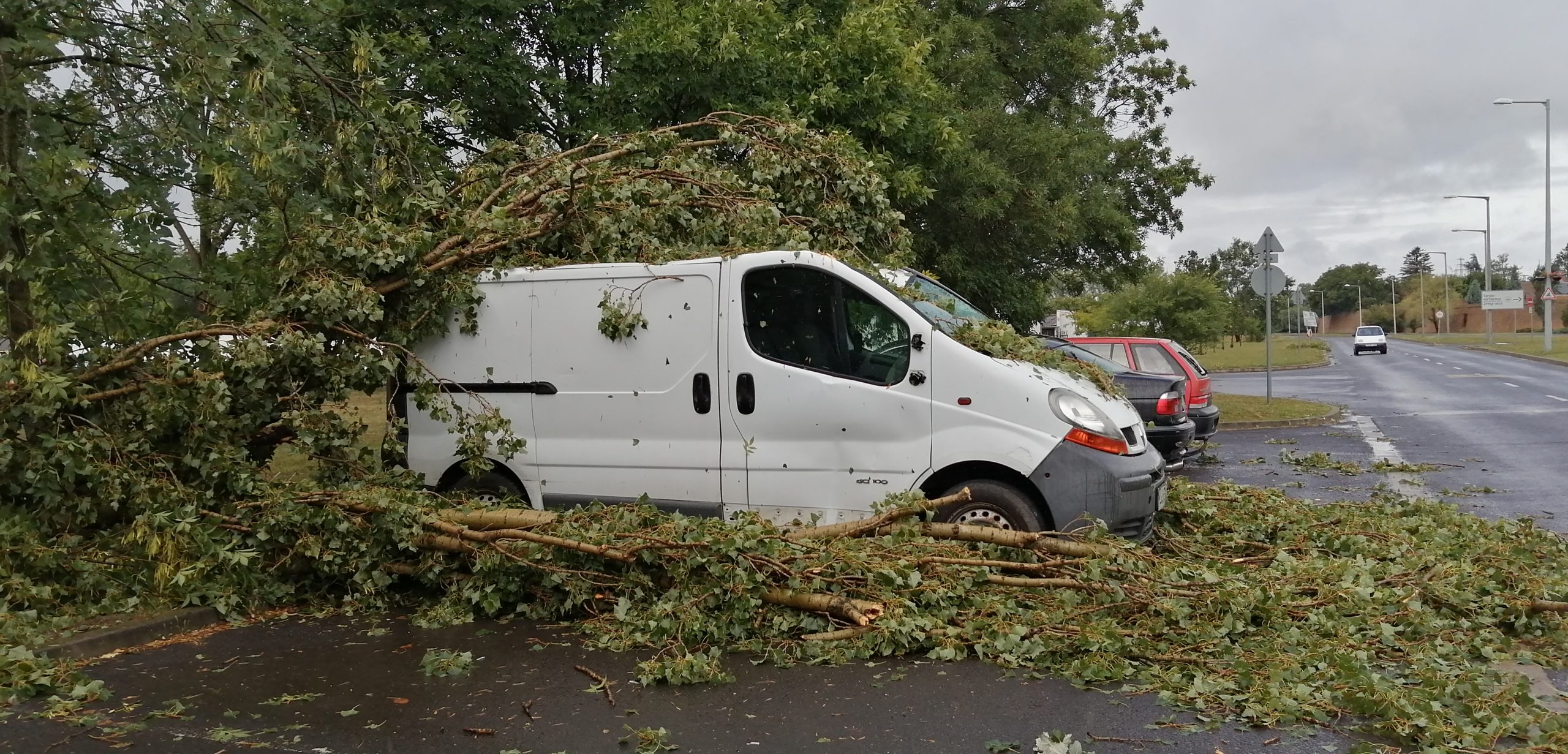 A Kertvárost sújtotta leginkább a tegnapi vihar, ott több fát tövestől döntött ki, és a kis Suzuki mellett az Európa parknál egy másik autóra is rádőlt egy fa.
