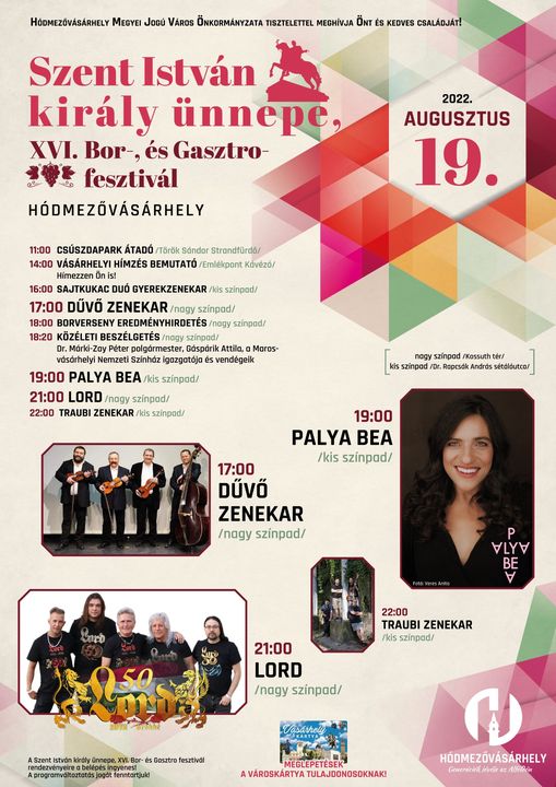 Az értékelő és a díjátadás után Márki-Zay Péter polgármester nyitotta meg, a Bessenyei Ferenc Művelődési Központ előtt kis színpadon a Szent István Király Ünnepét és a XVI. Bor- és Gasztrofesztivált, kívánva mindenkinek jó szórakozást, s ismertetve a vasárnapig tartó programsorozat legérdekesebb rendezvényeit.