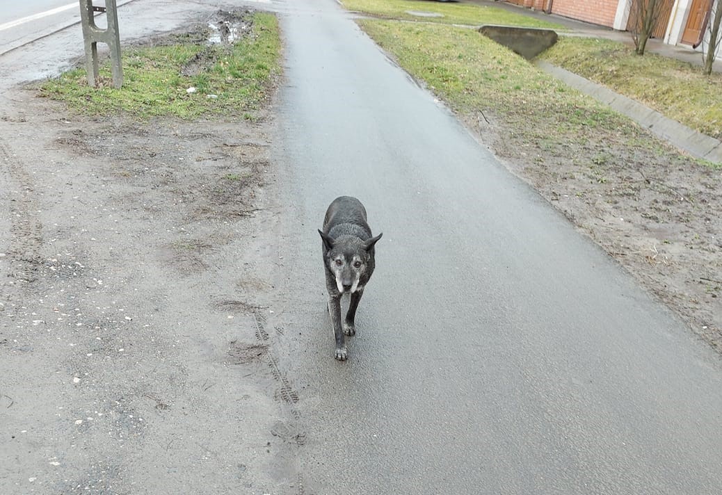 Nem fél az autóktól sem. Ha a gazdája keresné, arra találja.