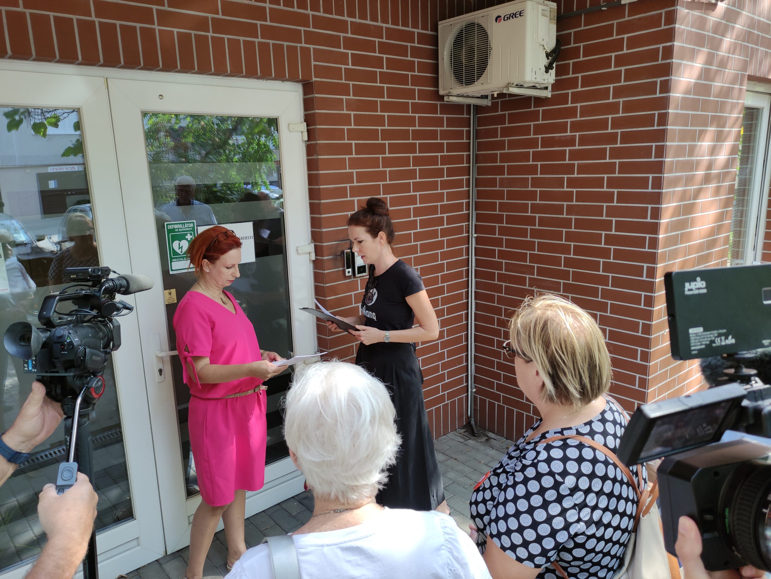 A vásárhelyi tankerületnél sem tudták Miklós Anikó kezeibe adni azt, a tankerület vezető asszony helyett a titkárság egyik munkatársa vette azt át Tóth Rebekától, az aHang Csongrád megyei koordinátorától azzal, hogy azt átadja a vezetőnek.