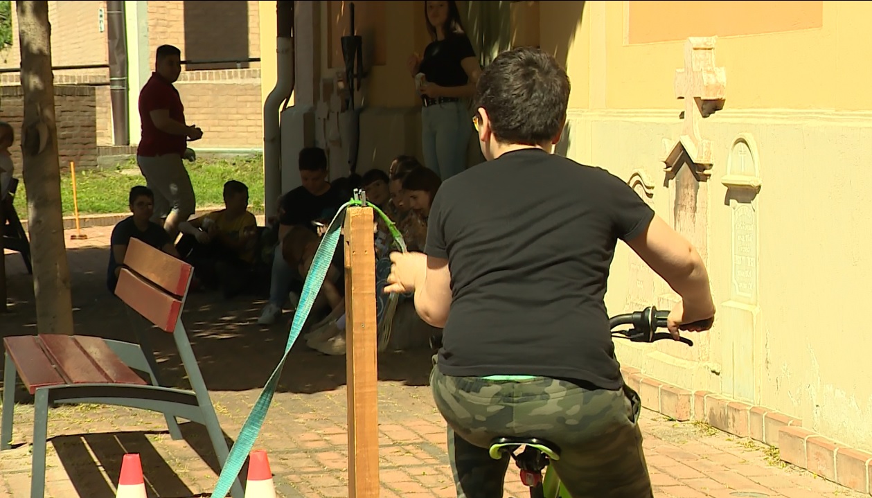 Kerékpáros akadálypályán próbálgatják tudásukat a diákok. A vásárhelyi roma nemzetiségi tanács szervezésében mintegy 100 általános iskolás vett rész csütörtök délelőtt egy KRESZ ismereti, elsősegélynyújtó és prevenciós foglalkozáson.