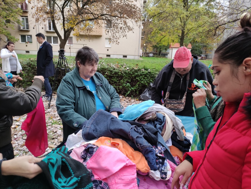 Válogattak is az asszonyok a Kossuth kör által a Szabadság téri játszótérhez kihozott ruhák között derekasan. És egy-két férfi is megtette ugyanezt. Volt, aki egy egész zsáknyit vitt haza, de akadt, olyan is, aki csak néhány dolgot. Aki semmit sem talált a ruhakupacban magának, végül az sem távozott üres kézzel, végül találtak neki a Kossuth körösök két éppen rávaló pulóvert is. A gyerekek pedig boldogan válogattak a játékok közt.