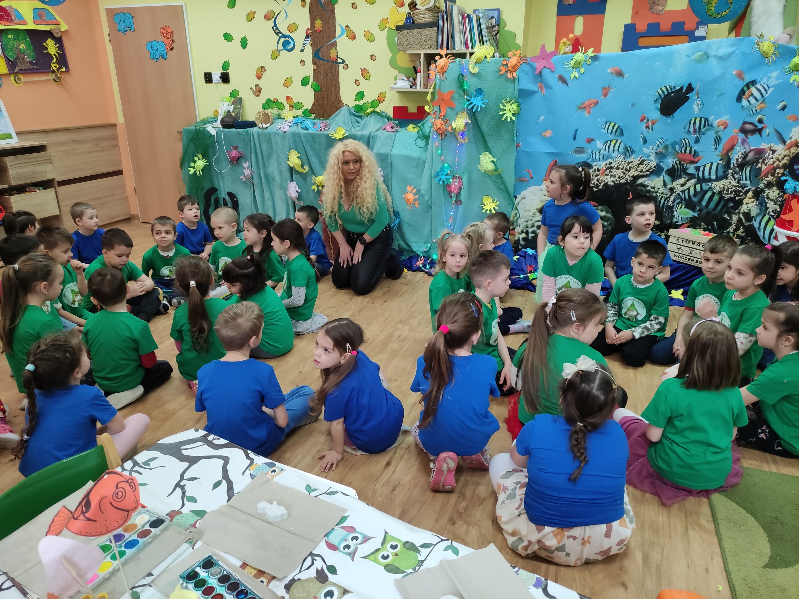 A Vízimanók foglalkozáson egyébként a Klímanócskák és a Süni csoport tagjai közös műsort adtak, majd festettek, ollóval vágtak ki vízi élőlényeket és mindenféle, a természettel kapcsolatos játékot játszottak.