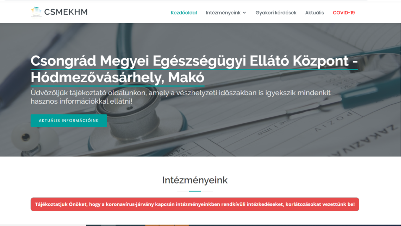 A kormány és több város, köztük Hódmezővásárhely után a városunkban, Makón és Kakasszéken is működő kórházak fenntartója is indított a koronavírussal kapcsolatos tájékoztató aloldalt weboldalán. Ez ITT érhető el, rajta olyan információk szerepelnek, mint a kórházak ellátási és látogatási rendje, betegjogi képviselet, véradások időpontja, vannak megválaszolt Gyakran Ismételt Kérdések, információ az erős terhelésnek kitett kórházi dolgozók online tanácsadásáról és adományokat is fogadnak.