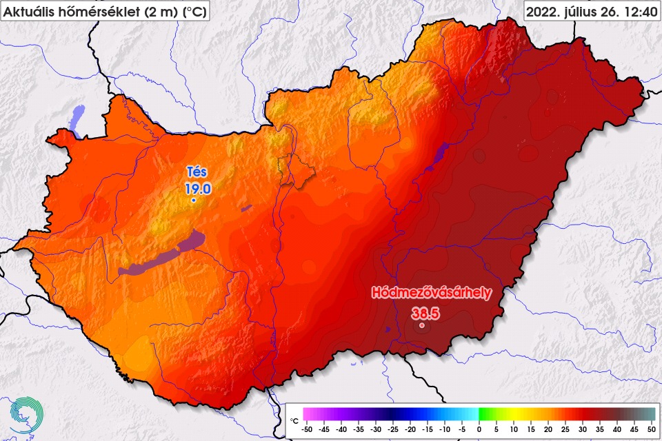 Tegnap délután közel 20 fokos különbség volt megfigyelhető: Tésen 19, Hódmezővásárhelyen 38.5 fokot mért az Országos Meteorológiai Szolgálat.