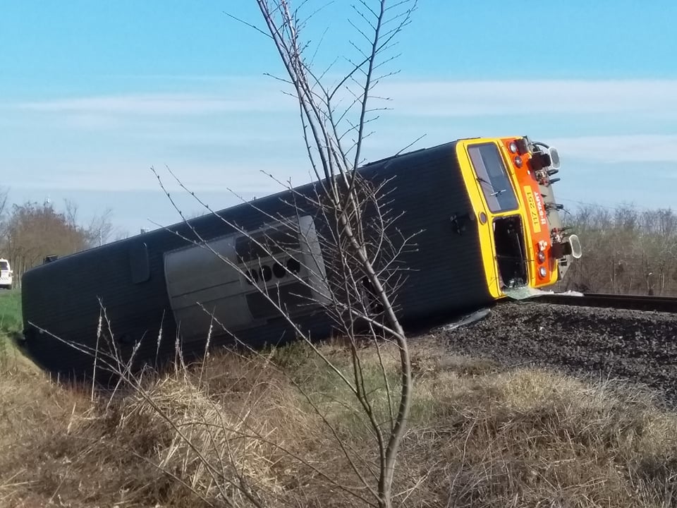 A vonat kisiklott, mentőhelikopter is van a helyszínen. Az utat lezárták.
