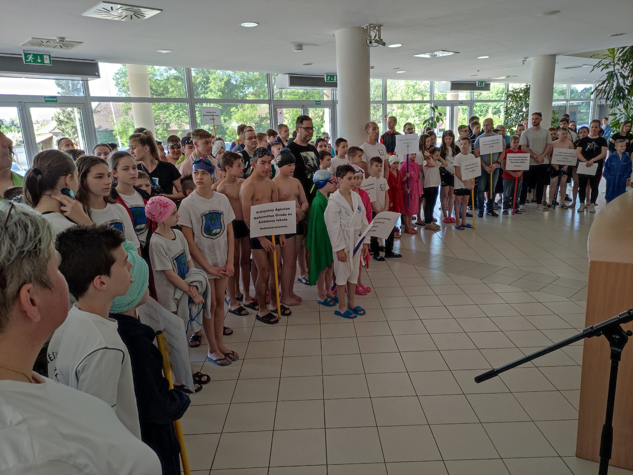 Becsey János paralimpikon, az úszóverseny díszvendége azt kívánta, a diákoknak, hogy amikor Európa legszebb uszodájában, a vásárhelyiben vannak, vegyenek részt egy jó vetélkedésen. – Amikor a parton vagyunk, akkor barátok vagyunk, a medencében pedig vetélytársak – hívta fel a figyelmet.