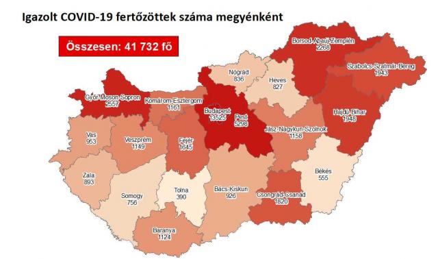 A kormányzati portálon azt írták: 41 732-re nőtt a Magyarországon azonosított fertőzöttek száma. Az elhunytak száma 1052-ra emelkedett, 12 628-an már meggyógyultak.