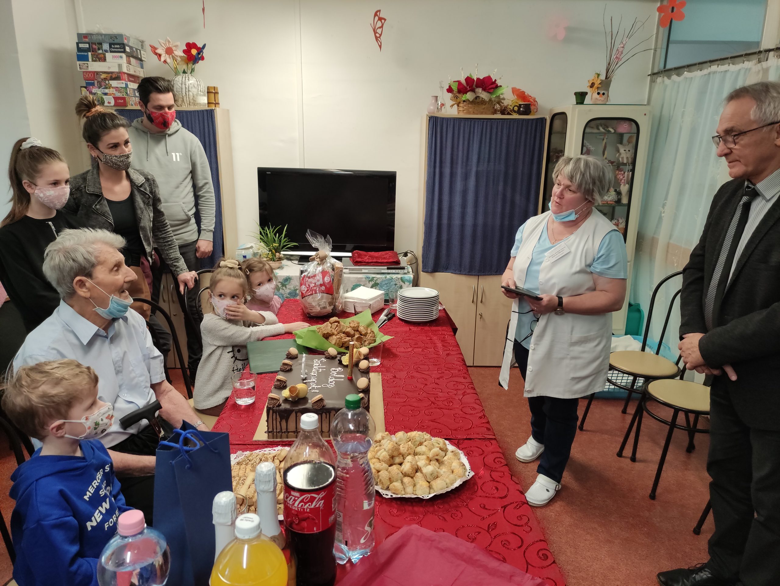 90. születésnapját két unokájával és hat dédunokájával közösen ünnepelte, maga fújta el a 90-es számot kiadó gyertyákat. Végül együtt ették meg a hatalmas ünnepi csokitortát. Érdekesség, hogy Temesvári János Józsefet családtagjai is hol Jánosnak, hol Józsefnek hívják. Az intézmény nevében Borbély Andrásné Radinkó Mariann, az otthon szakmai vezetője köszöntötte az ünnepeltet.