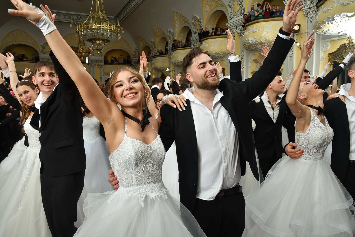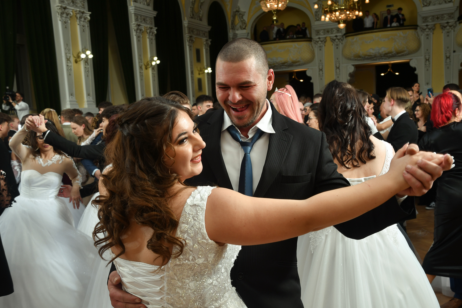 Negyvenhárom táncospár nyitotta meg este hétkor a két intézmény közös diákbálját. Az Eötvös tanulói keringőt választottak, a Corvinba járó diákok salsát, a csárdás pedig közös produkció volt. Draskovits Diána és Nagygyörgy Éva az est háziasszonyai minden táncost név szerint bemutattak.