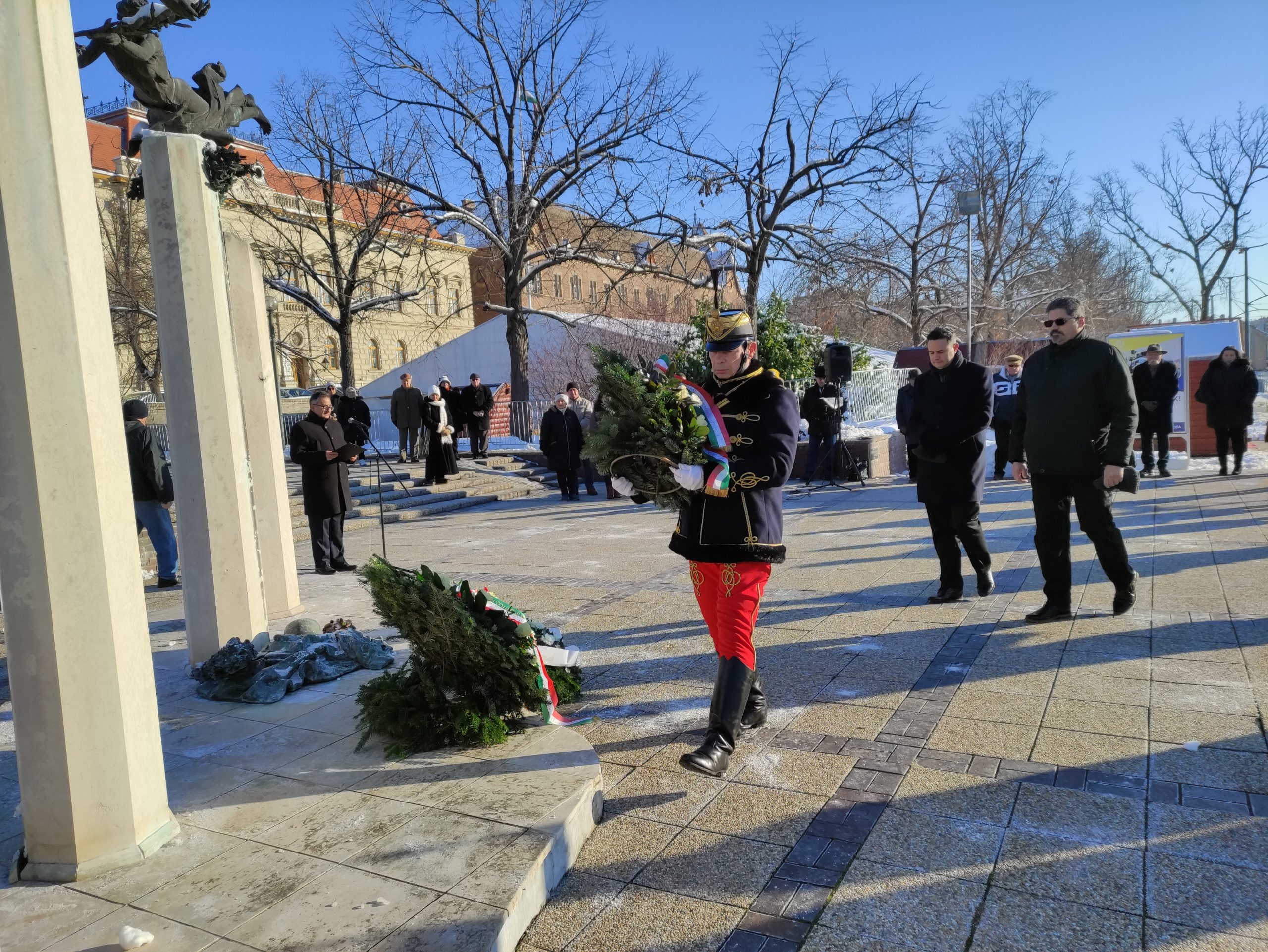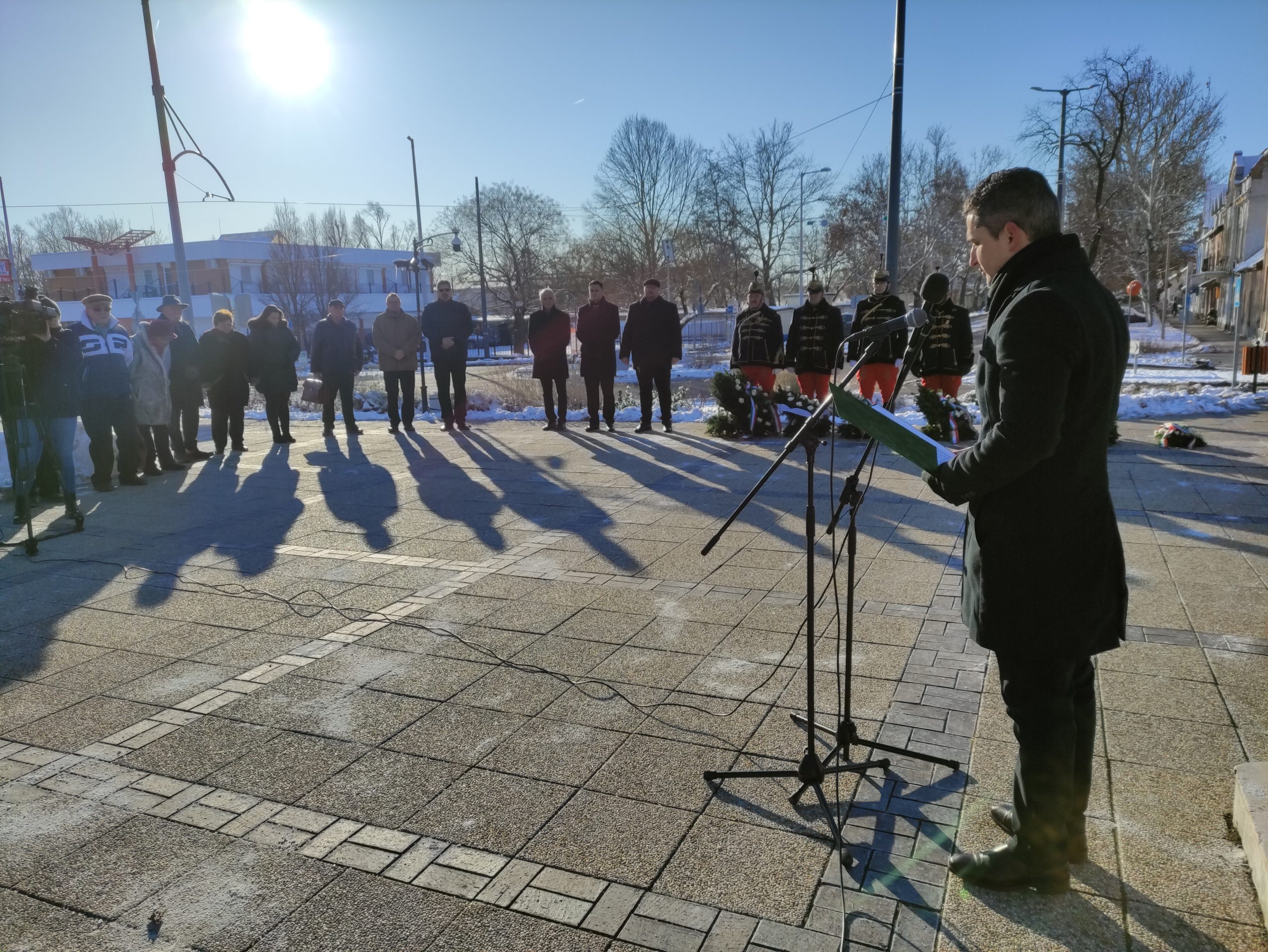 Vásárhely polgármestere emlékeztetett arra is, hogy a második világháború után egy rendkívül hosszú, viszonylagosan békés időszak következett, a hidegháború: – A világtörténelemben is ritka, ami nekünk, mai generációnak megadatott: nincs közvetlen tapasztalatunk a háború borzalmairól, a nagyapákat, nagyszülőket kell emlegetni, amikor háborús áldozatokról beszélünk. Ez a béke nem kis részben annak köszönhető, hogy létrejött az Európai Unió, illetve elődje, hogy az európai népek többé ne háborúzzanak. Ma ezzel szemben – Putyinnal, Hszi Csin-pinggel és Trumppal – újra visszatért a birodalmi logika. Amikor az Amerikai Egyesült Államok elnöke Venezuelával kapcsolatban már nem demokráciavédelmet, nem diktatúraellenes érveket, hanem az olajat nevezi meg indokként; amikor háborúval fenyegeti az Európai Uniót; amikor felmerül, hogy akár erővel is elvenné Dániától Grönlandot – a helyiek önrendelkezését semmibe véve –, mindez ugyanennek a birodalmi logikának a jele. Azt ajánlom az Önök figyelmébe, hogy mi a saját szerény eszközeinkkel – gondolatainkkal, beszélgetéseinkkel és főhajtással, emlékezéssel – a béke előtt tisztelegjünk, és tegyünk meg mindent azért, hogy ne a háborúpárti őrültek irányítsanak, akik mások életén gázolnak át, és katonákat küldenek a Don-kanyarba vagy Afrika közepére, Csádba. Mi ezzel szemben mindig a béke pártján, az Európai Unió pártján és a NATO pártján álljunk – mondta.