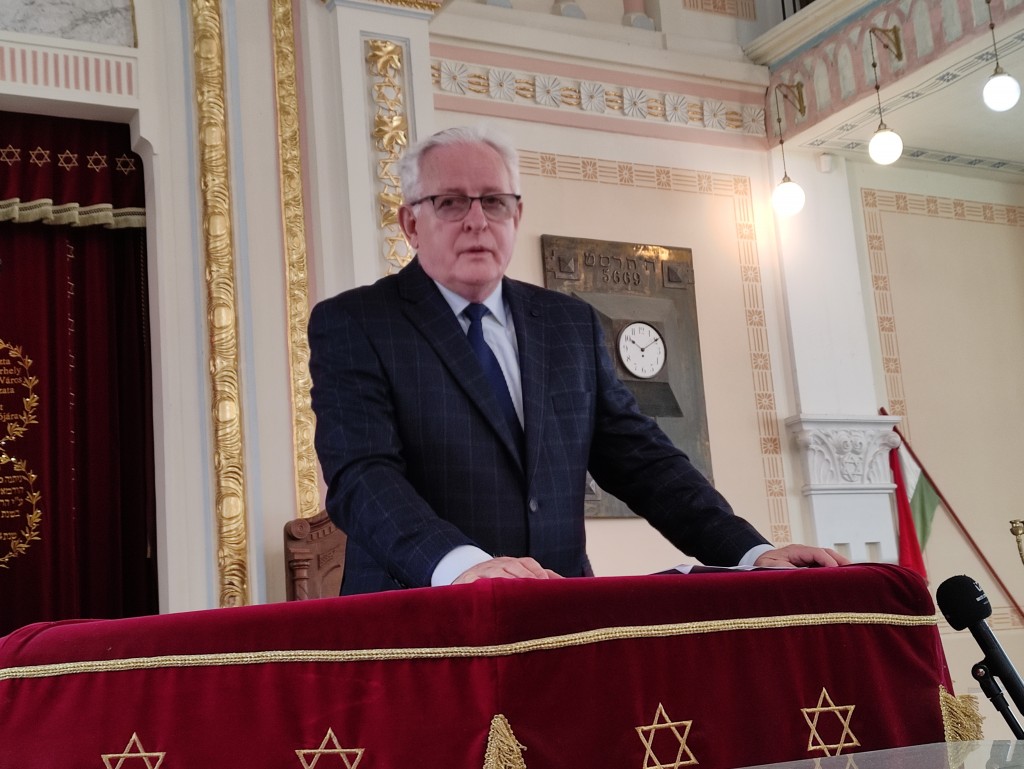 A zsinagógában folytatódott megemlékezésen Márki-Zay Péter polgármester arról is beszélt, hogy Hódmezővásárhely 1944-ben példát mutatott azzal, hogy itt Beretzk Pál alpolgármesternek köszönhetően nem állítottak fel gettót, hogy elhurcolásukig viszonylag kivételes helyzetben voltak. Ez azonban nem mentette meg őket attól a sorstól, amelyben sokmillió nemzettársukkal, európai zsidóval és a II. világháború más áldozataival együtt osztoztak. – A holokauszt üzenete, hogy ma sem hagyhatjuk szó nélkül azt, hogy akár származás, akár más alapon megkülönböztetnek embereket. Ha nem is ipari precizitással, mint annak idején a náci Németország, de ma is van népirtás, ma is van háború, halál és gyűlölködés. A mi feladatunk ma is az, ne legyünk közömbösek, hiszen a közömbösség öl.
