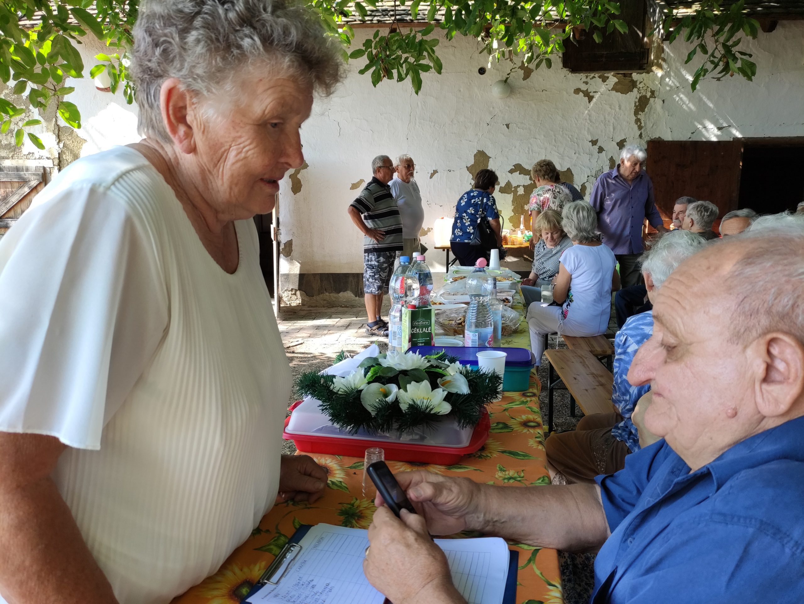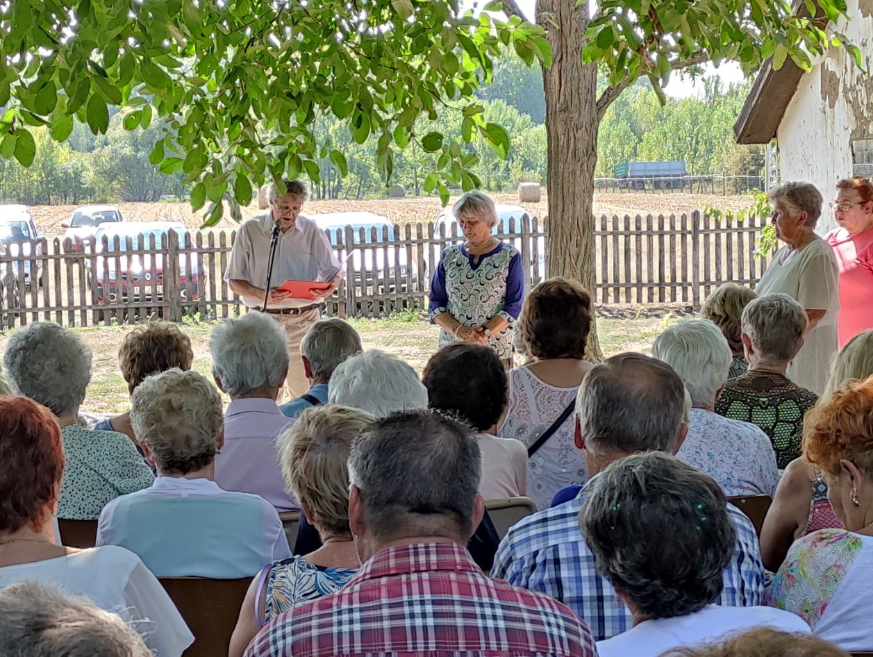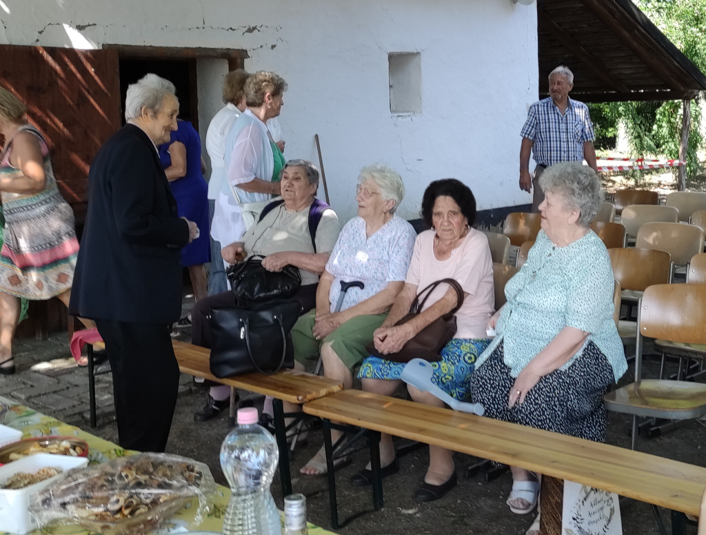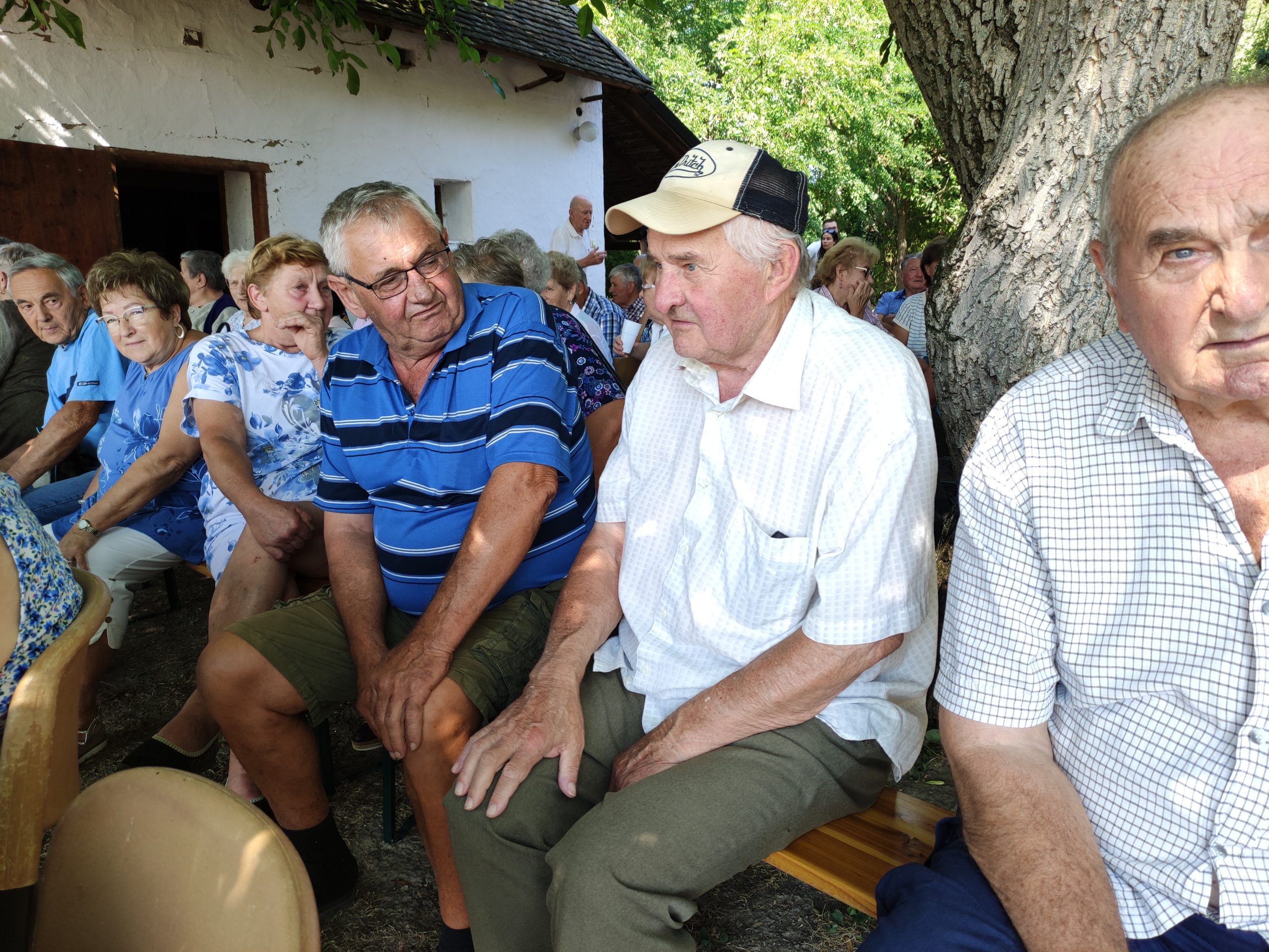– Eddig valamiért sosem tudtam részt venni ezen a találkozón, mert mindig volt valami, ami megakadályozott. Tavaly például a nagy eső. Így most vagyok itt először – árulta el Hetényi Ferenc Istvánné, született Mészáros Veronika. – A gyerekkoromat a 15. dűlőben töltöttem Alsó-Kopáncson. Ott jártam iskolába is. Amikor férjhez mentem, a 9. dűlőbe kerültem. Ott születtek meg a gyerekeink, a három fiú. 1977-ben vagy ’78-ban költöztünk be Belső-Kishomokra – tette hozzá. Veronika néni elmondta, hogy míg a tanyavilágban éltek, folyamatosan dolgozott, hiszen mindig volt mit tenni: kapált, szénát szedett, tehenet fejt, legeltetett, kukoricát tört – azaz mindent megcsinált, amit kellett. A szórakozást akkoriban az jelentette, hogy hébe-hóba összejöttek a fiatalok, de nagy bálokra nem emlékszik. – Szép volt ez az időszak, de mégis eltelt – mondta.