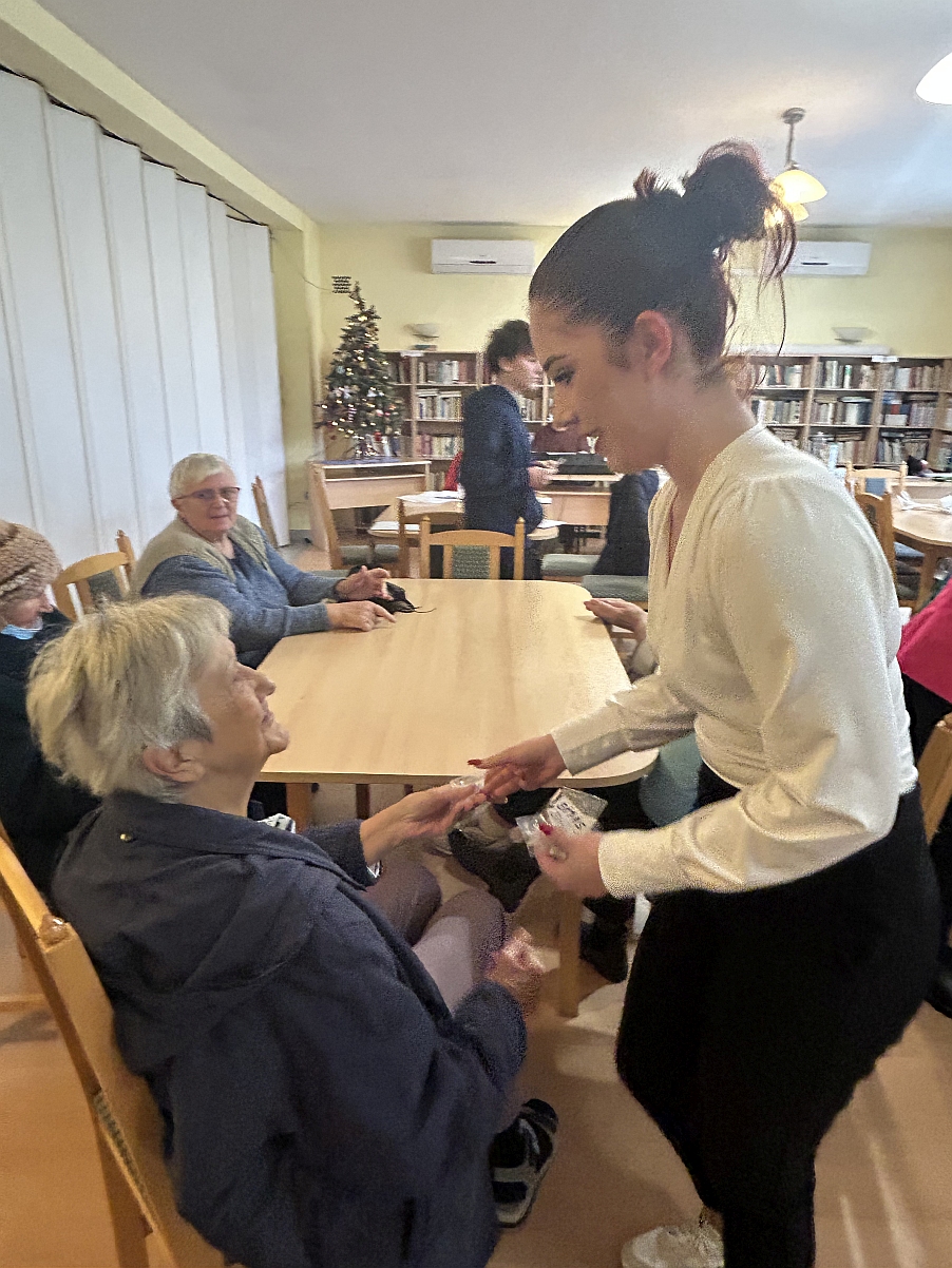 Szerdán Hódmezővásárhely Kertvárosában, a Kása erdő szélén apró karácsonyi csoda tanúi lehettünk, amikor a Nyugdíjas Lakópark könyvtárában vendégül látták a Hódmezővásárhelyi SZC Eötvös József Technikum diákjait kedves, idős emberek.