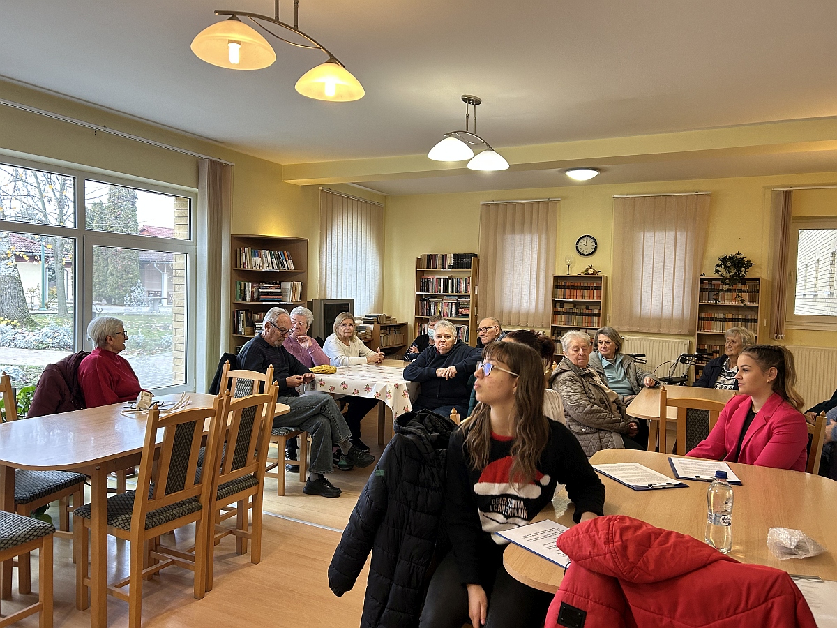 Szerdán Hódmezővásárhely Kertvárosában, a Kása erdő szélén apró karácsonyi csoda tanúi lehettünk, amikor a Nyugdíjas Lakópark könyvtárában vendégül látták a Hódmezővásárhelyi SZC Eötvös József Technikum diákjait kedves, idős emberek.