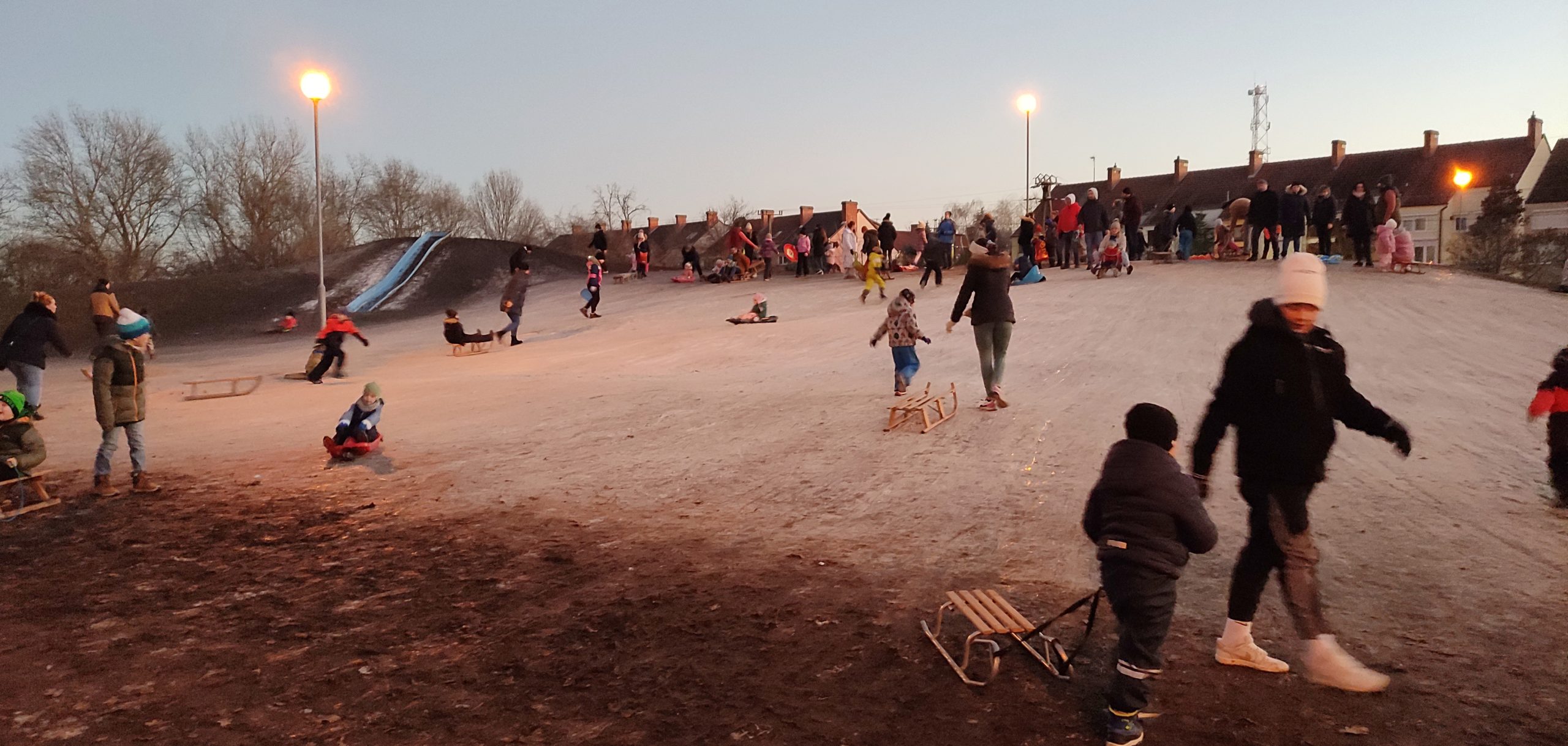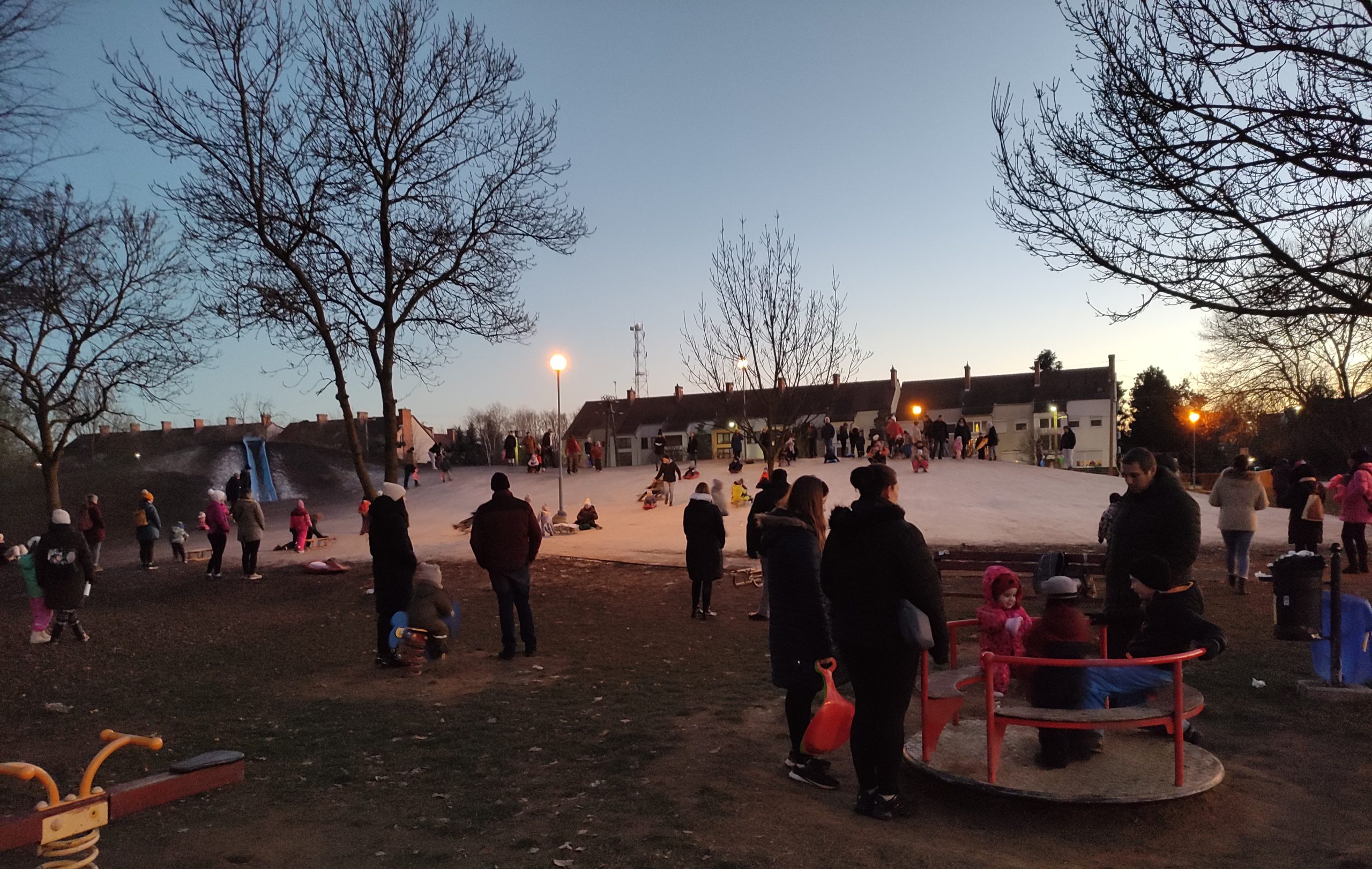Tegnap este, már sötétedés után is tömegek gyűltek össze a dombnál, hogy a téli örömöknek hódoljanak. És nemcsak kisgyerekek és szüleik, hanem nagymamák is elkísérték unokáikat.