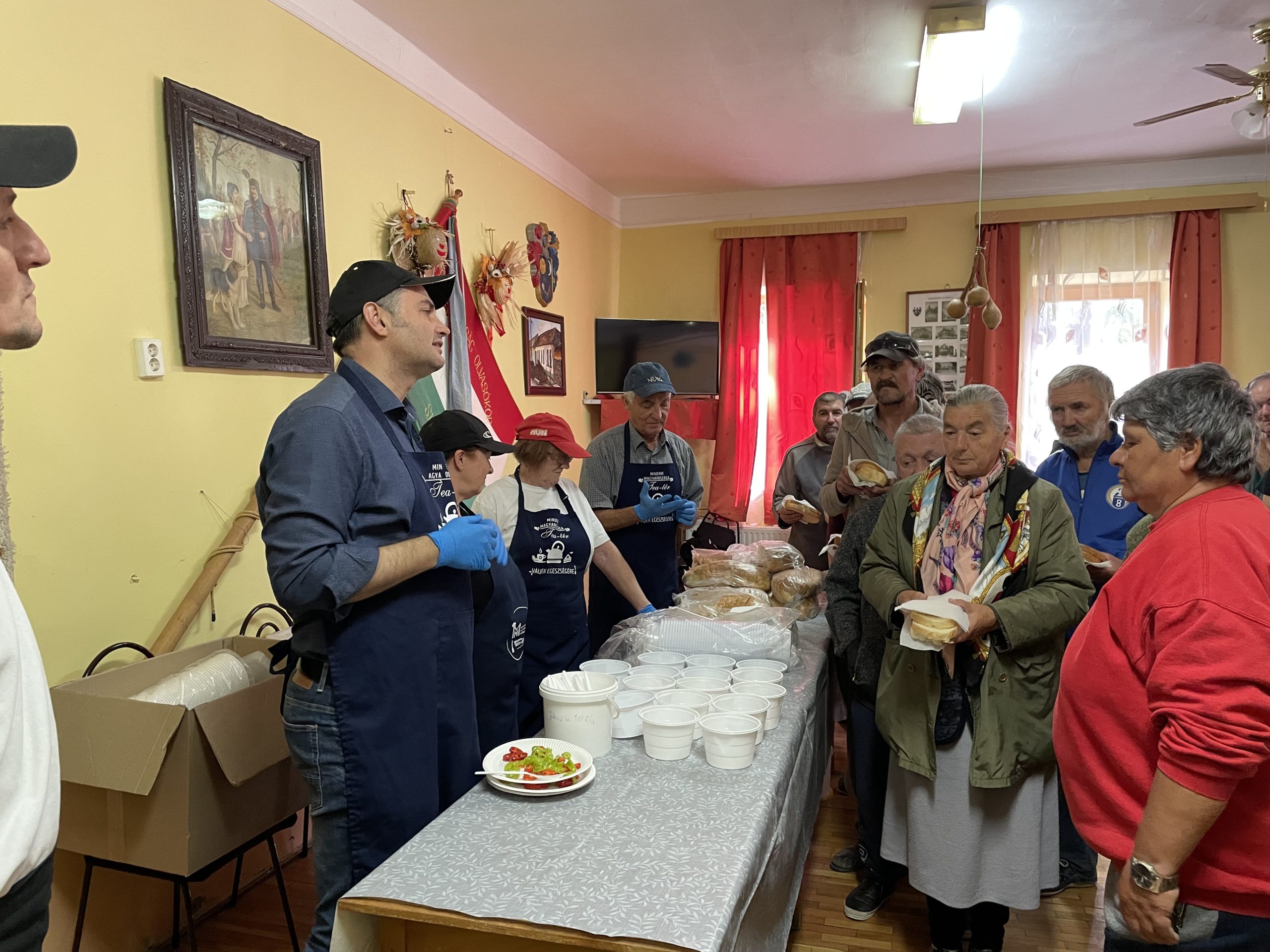 12 órakor Márki-Zay Péter és Sipos Róbert osztotta ki az ételt a jelen lévőknek, ifjabb Jovány Gyula pedig csípős szószt adott azoknak, akik kérték. Márki-Zayné Vincze Felícia pedig – sérülése ellenére – fáradhatatlanul osztotta a desszertet, a fahéjas kalácsot.
