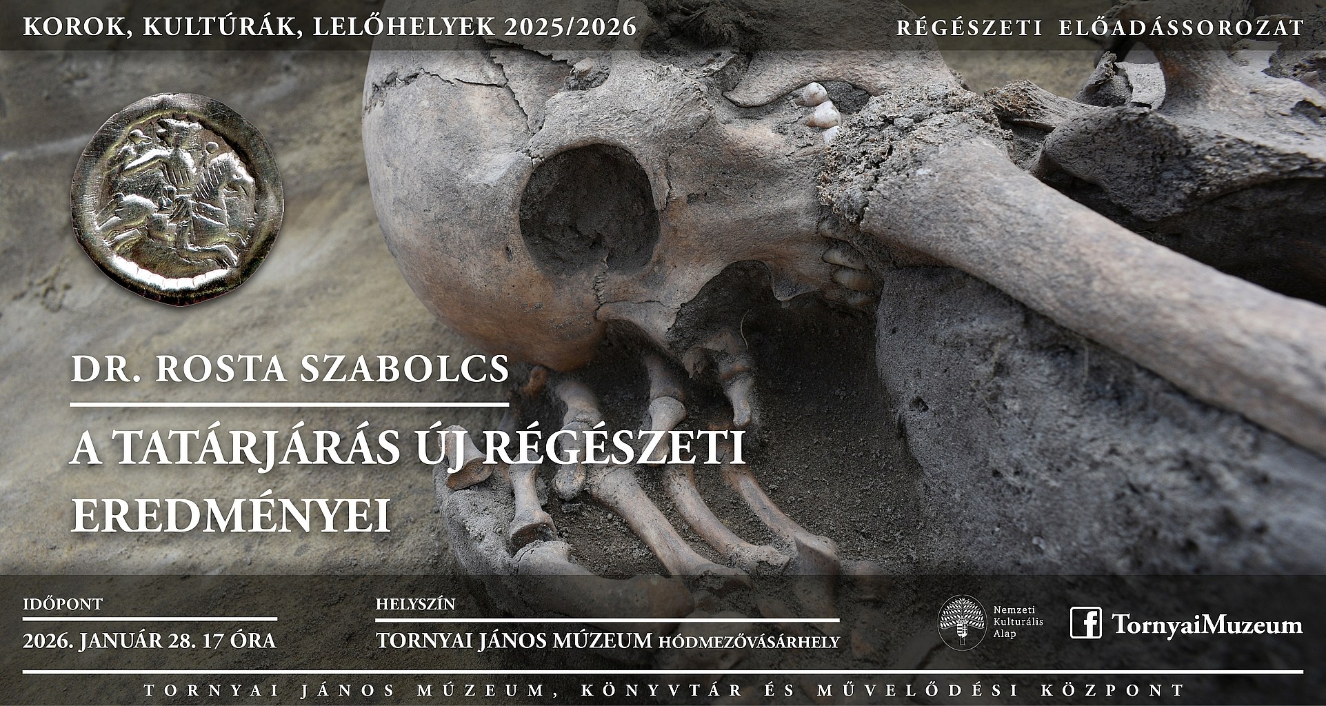 A Korok, kultúrák, lelőhelyek régészeti előadássorozat következő előadásán a tatárjárás új régészeti eredményeiről számol be Dr. Rosta Szabolcs régész, a kecskeméti Katona József Múzeum igazgatója január 28-án, szerdán 17 órai kezdettel a Tornyai János Múzeumban.