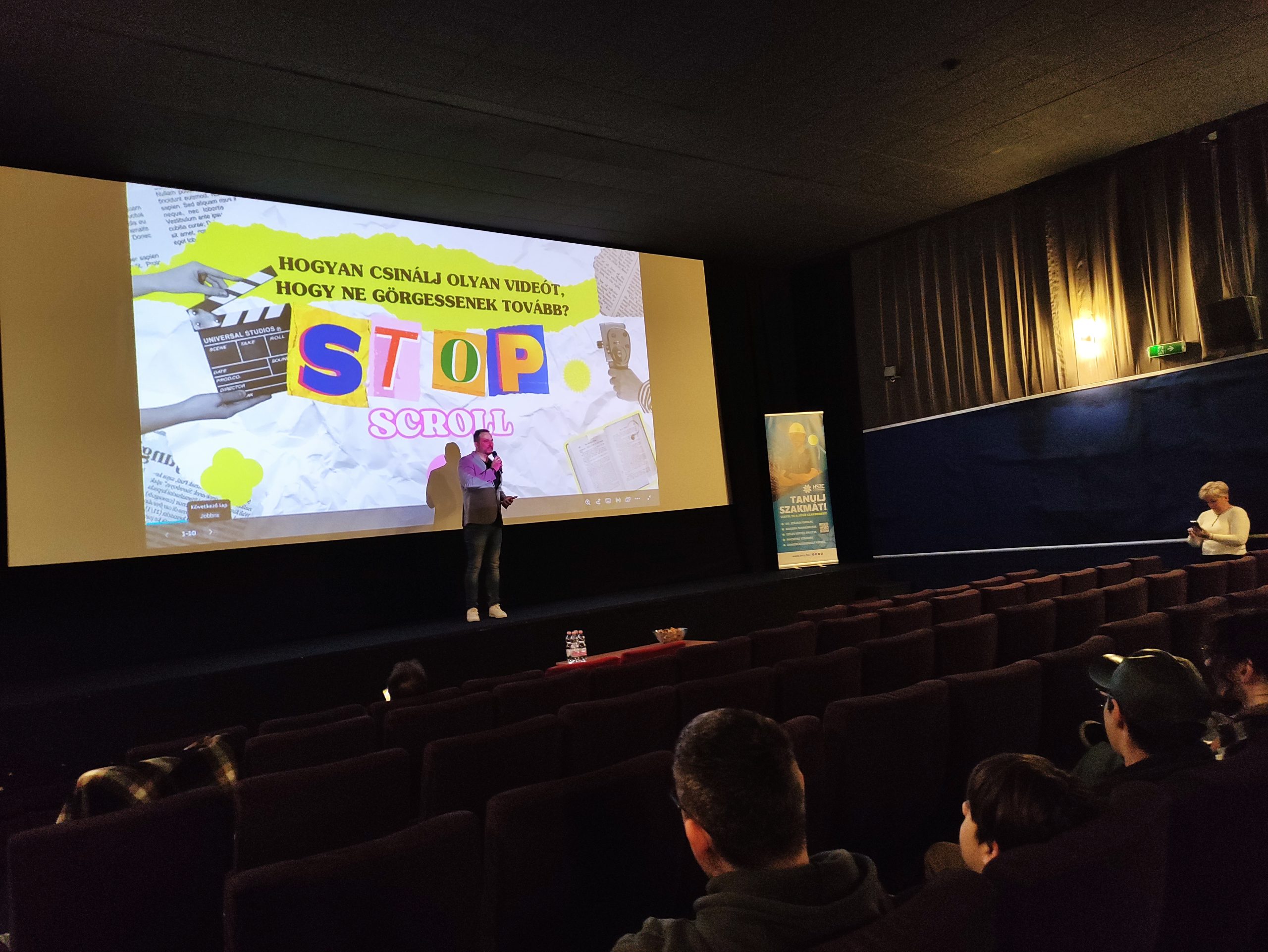 Ambrus Norbert, a HSZC kancellárja köszöntőjében azt mondta, hogy ez a mai az a nap, amikor a kreativitás a vászonra fog kerülni. – A Hódmezővásárhelyi Szakképzési Centrum három éve indította Kreaday című rendezvényét, melynek az a célja, hogy úgy segítsék a diákok a beiskolázást, hogy bemutatják az intézményüket. A versenyre benevezett anyagokat előzetesen Szentendrei Adrienn, az M2 gyermekcsatorna vezető szerkesztője, a DUE Médiatábor videós csoportvezetője, illetve Kisházi Sándor média- és marketingvezető zsűrizte. Az utóbbi interaktív előadást is tartott a vetítés előtt az érdeklődő közönségnek.
